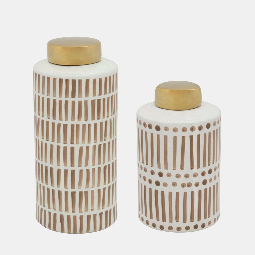 13″ Jar W/ Gold Lid, Tan
