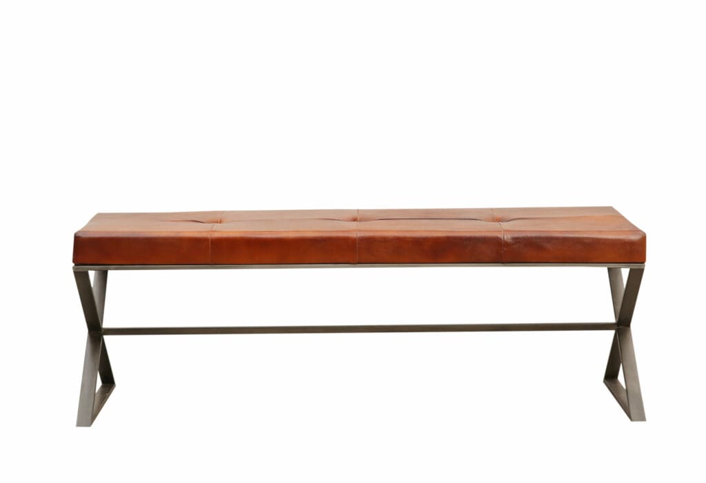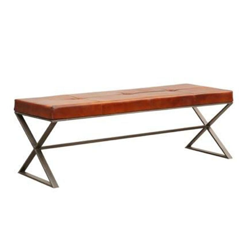 BENCH WITH LEATHER SEAT AND BASE METAL