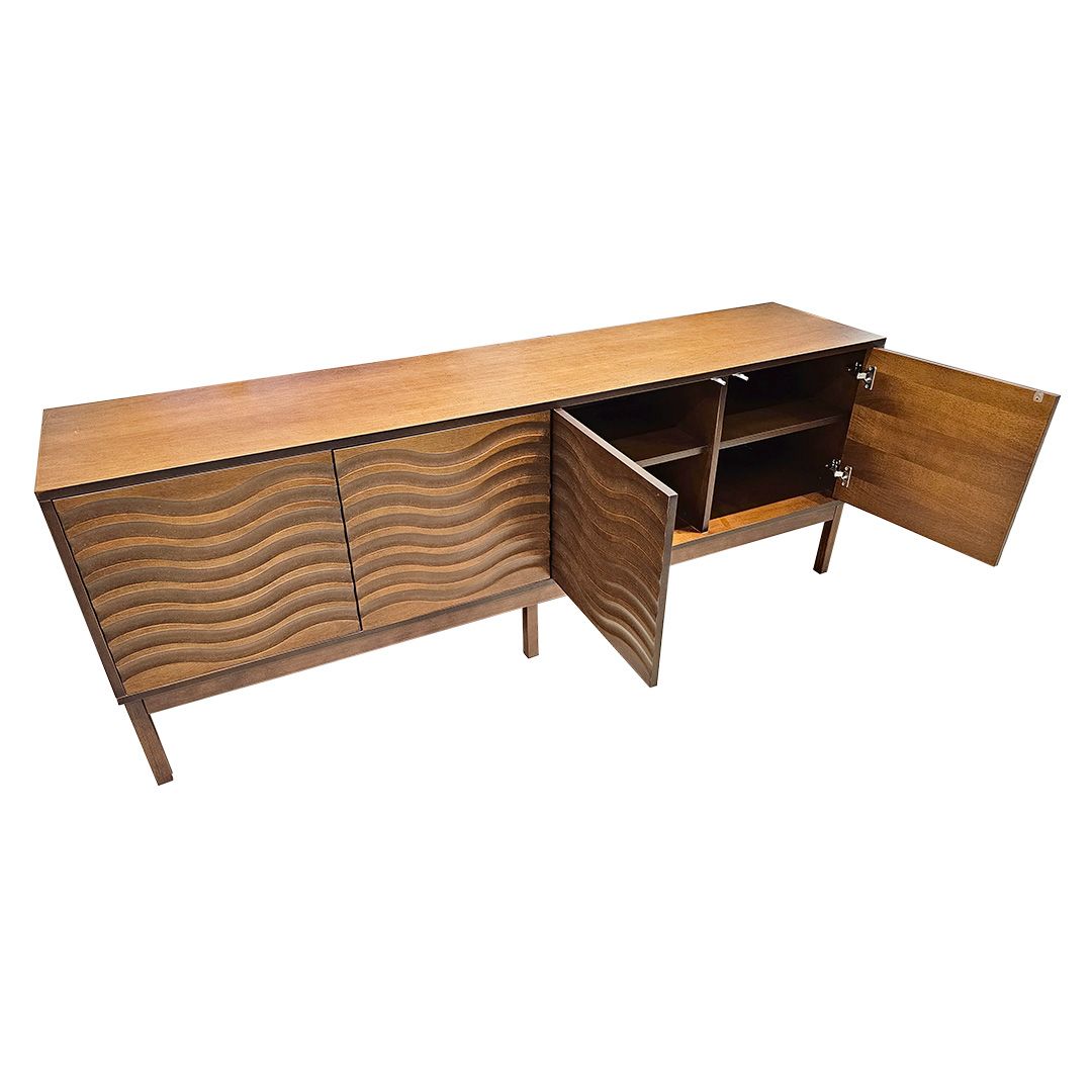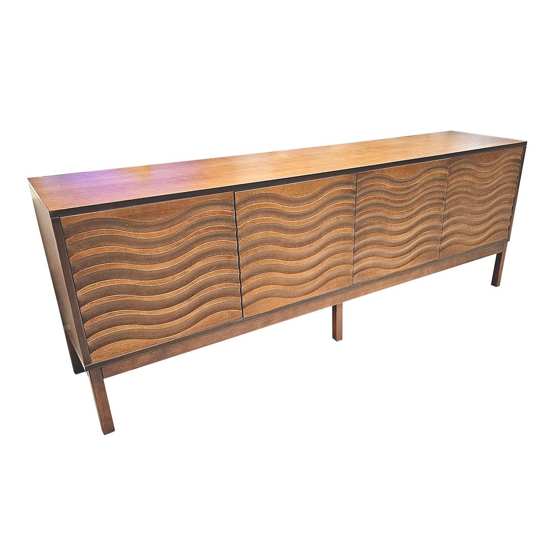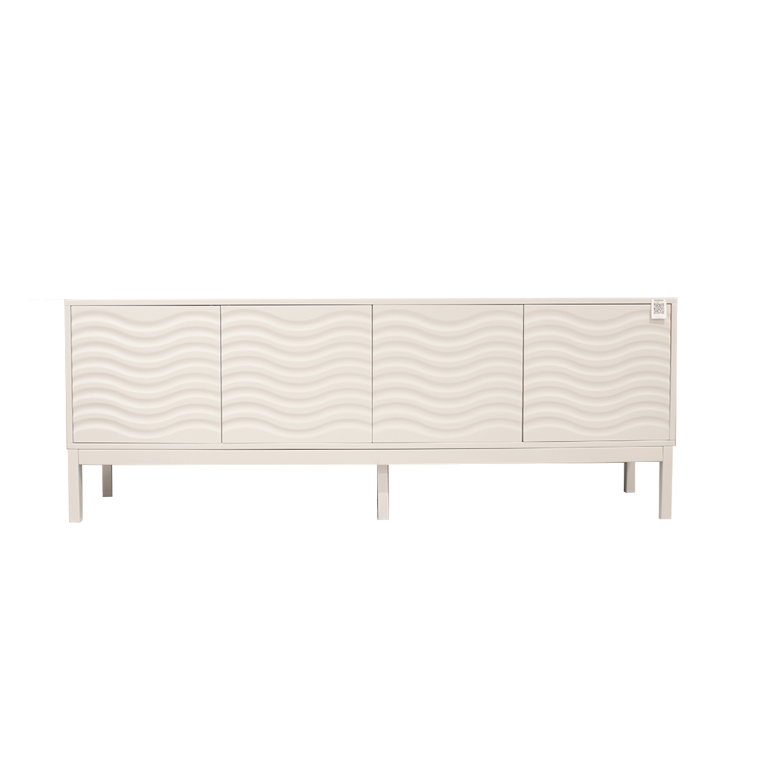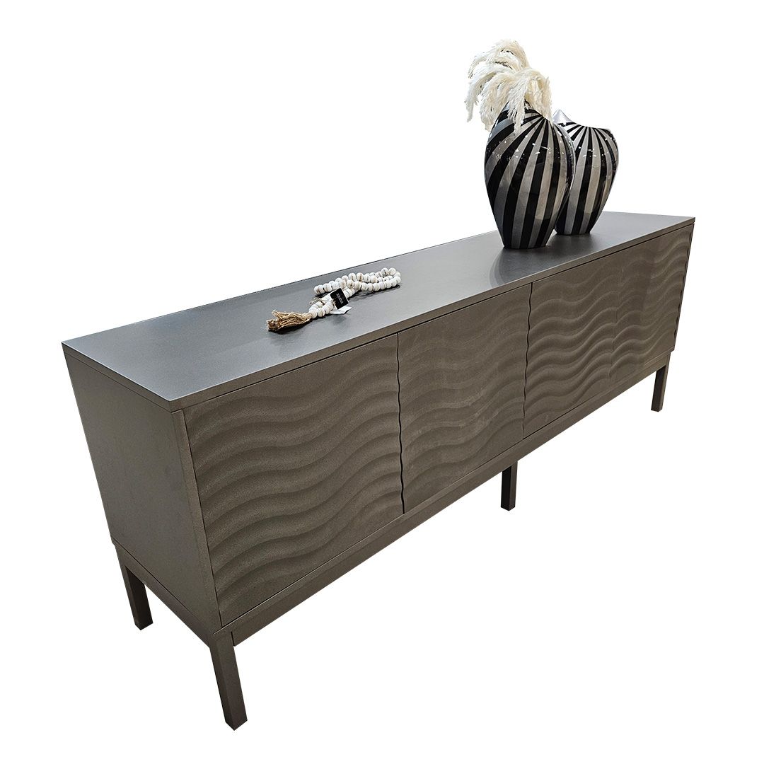 La Bufetera Gauss de diseño clásico se apoya elegantemente sobre seis patas. Su atractivo principal son los detalles labrados en forma de ondas en las puertas, que realzan su belleza artesanal.
