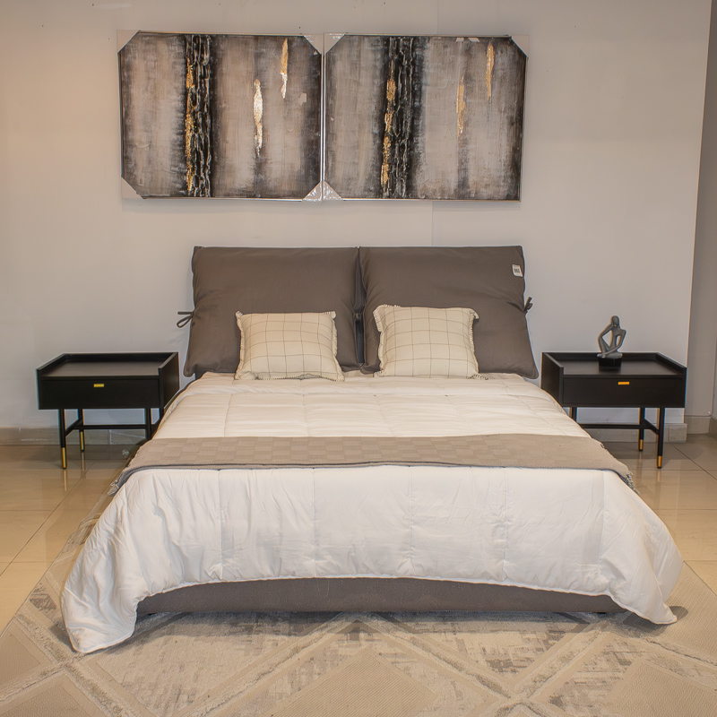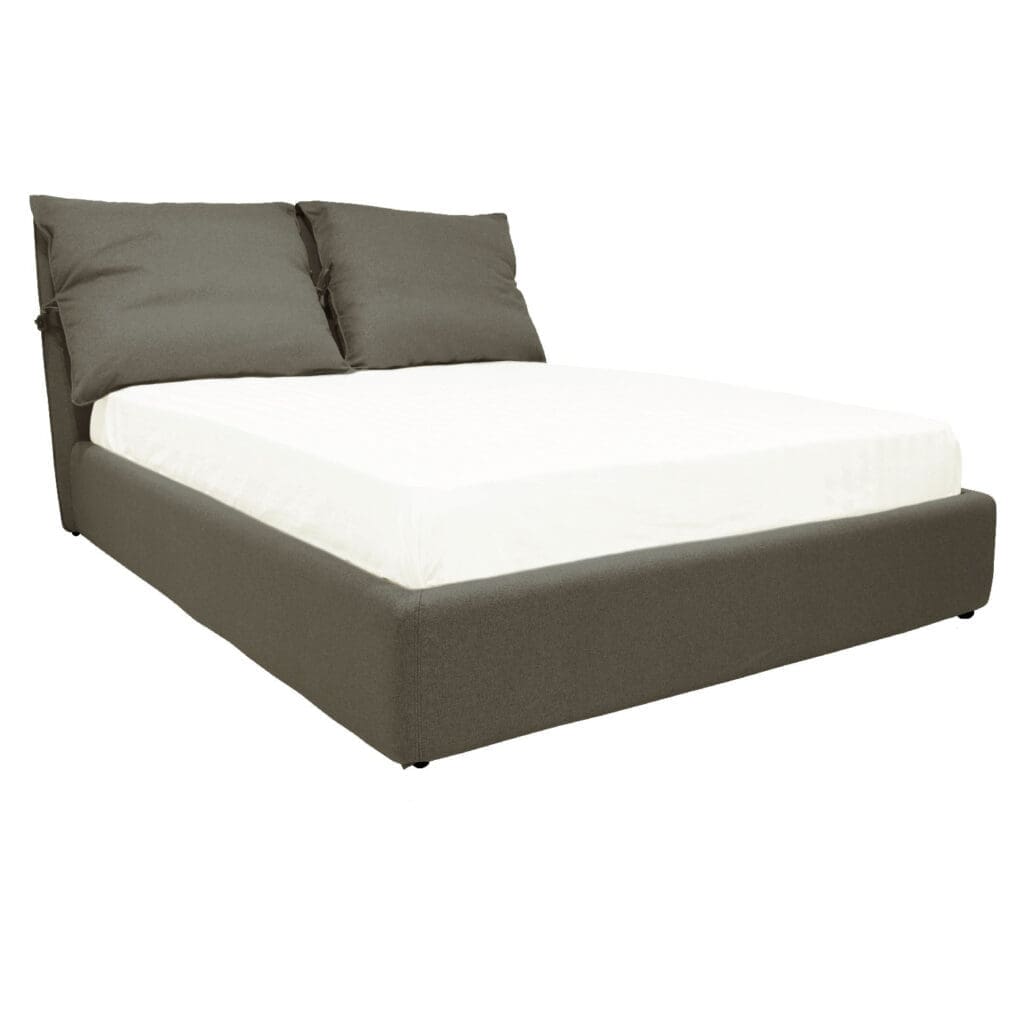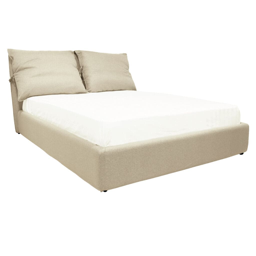 La Cama Keisha se caracteriza por su modernidad, con un diseño innovador que incorpora un respaldar único compuesto por almohadas integradas. Estas brindan un soporte excepcional, además de aportar un toque de confort y elegancia al dormitorio.