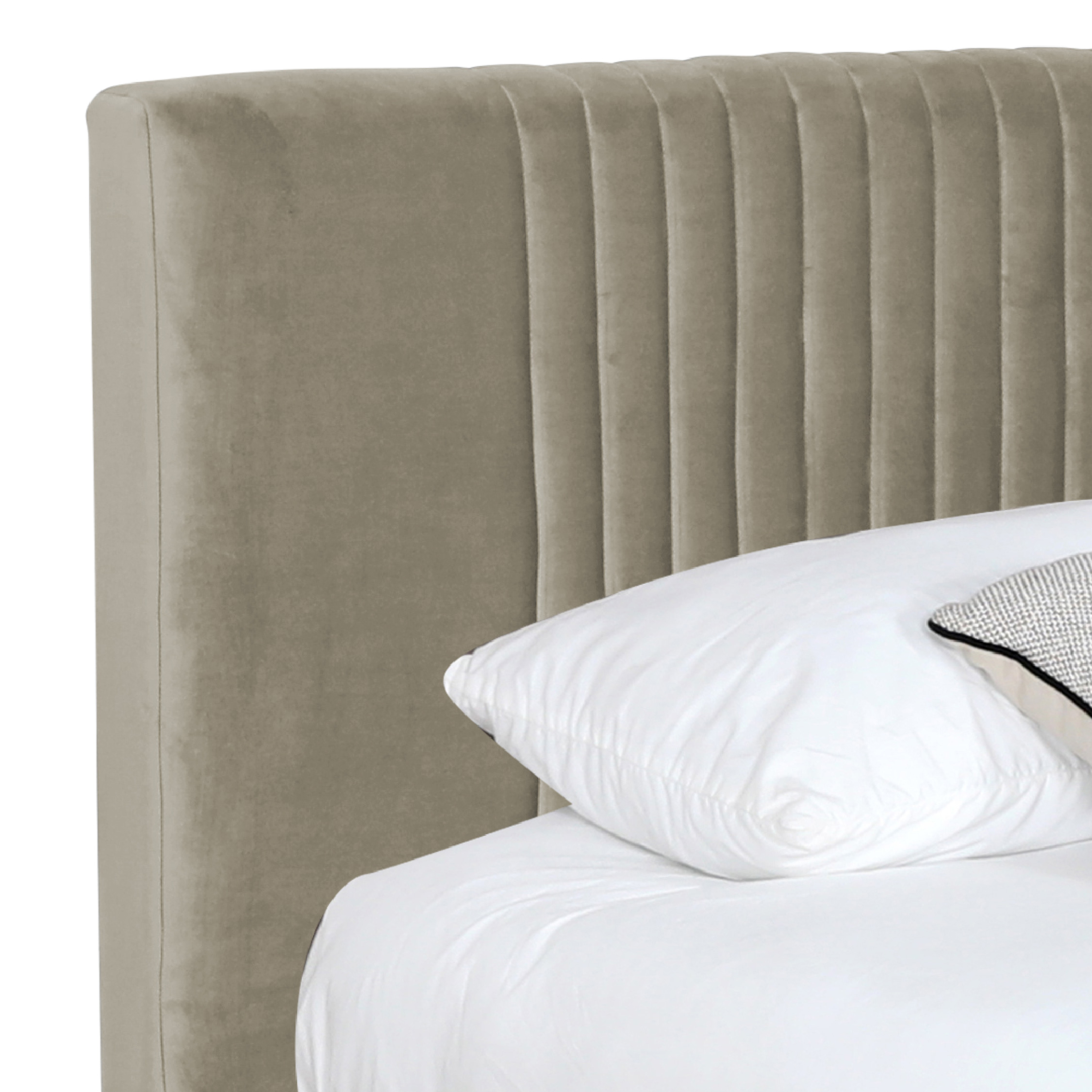 - Tapizado en velvet para una textura suave y acogedora.