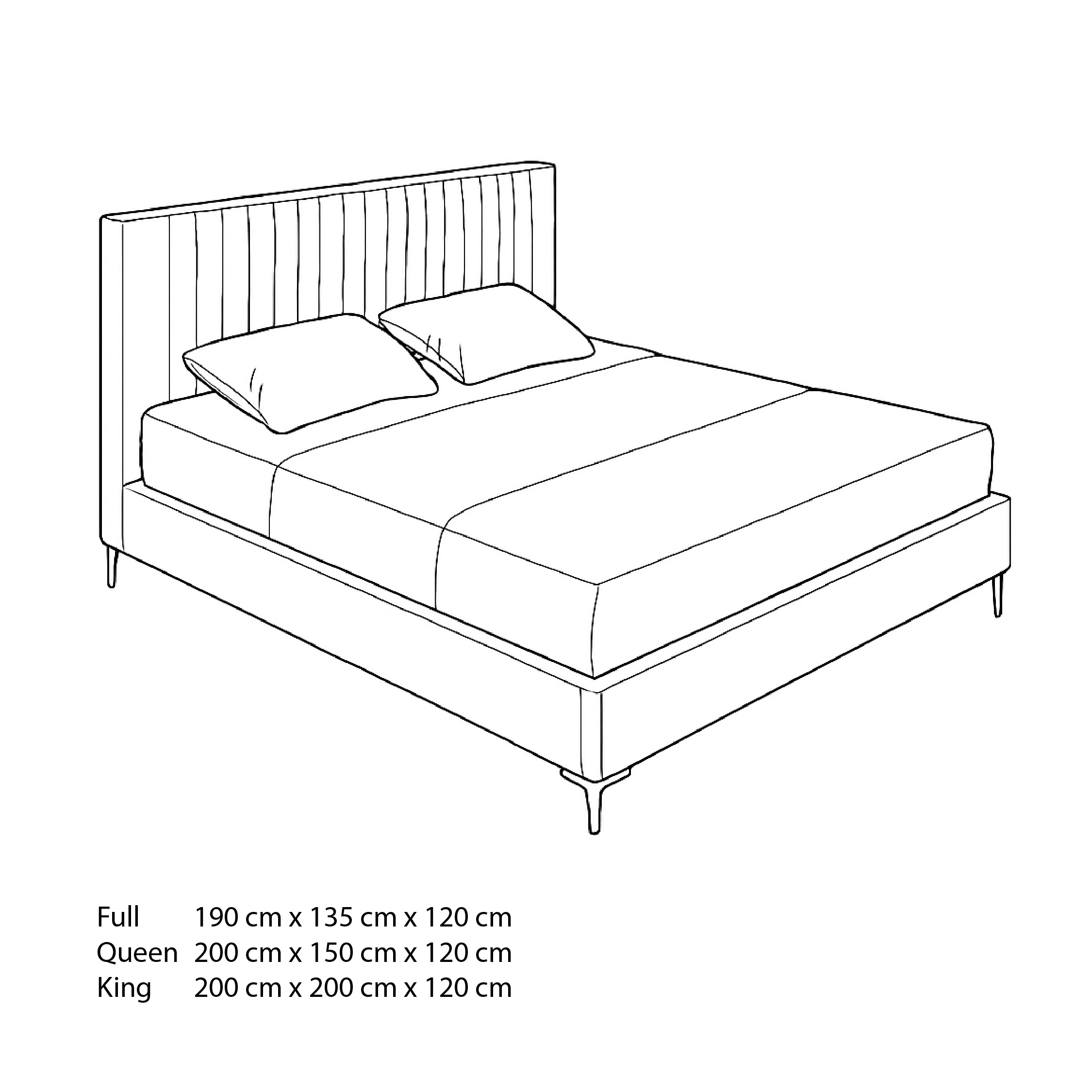 | Queen | 200 cm | 150 cm | 120 cm |