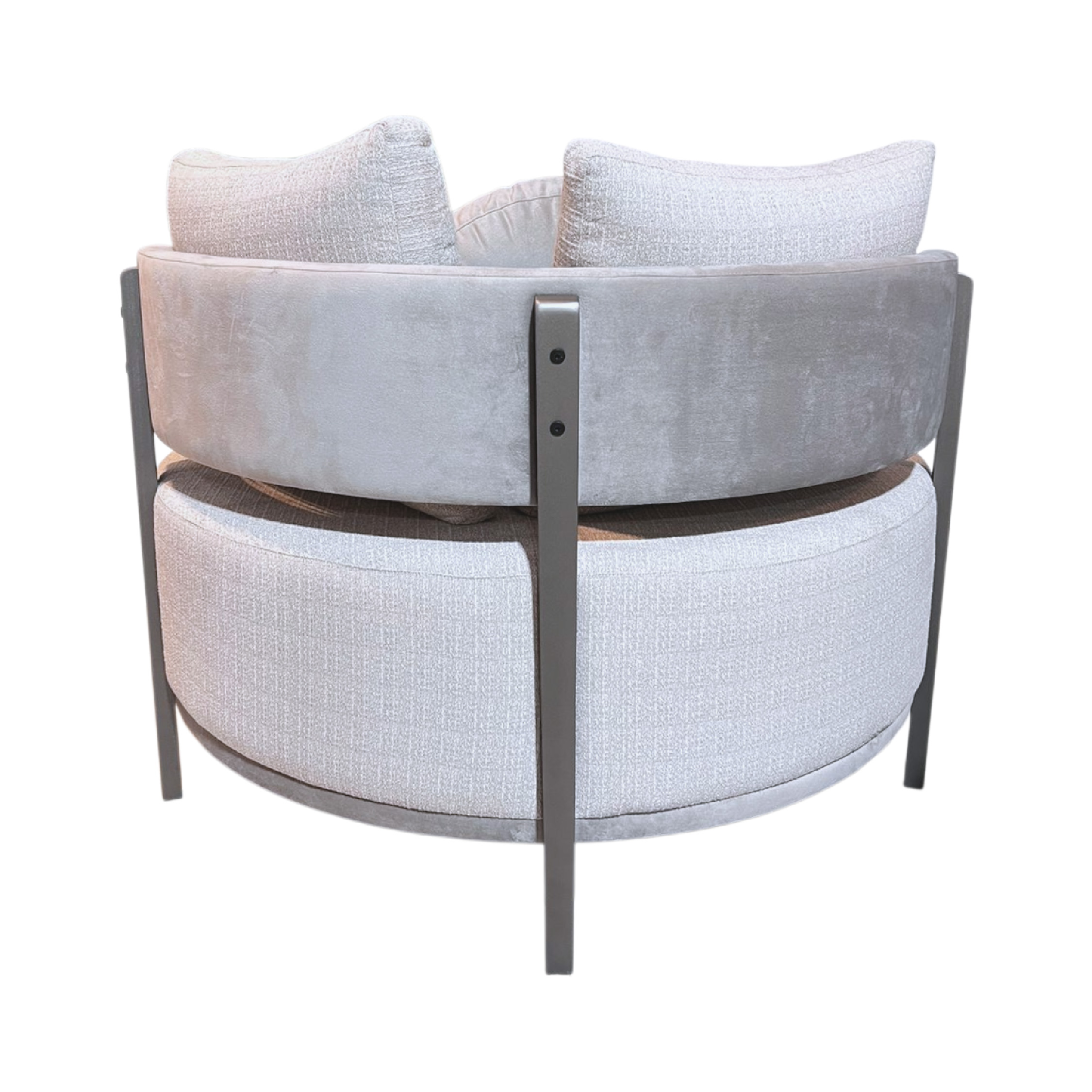 - Estructura en madera firme con tapizado en tela suave.