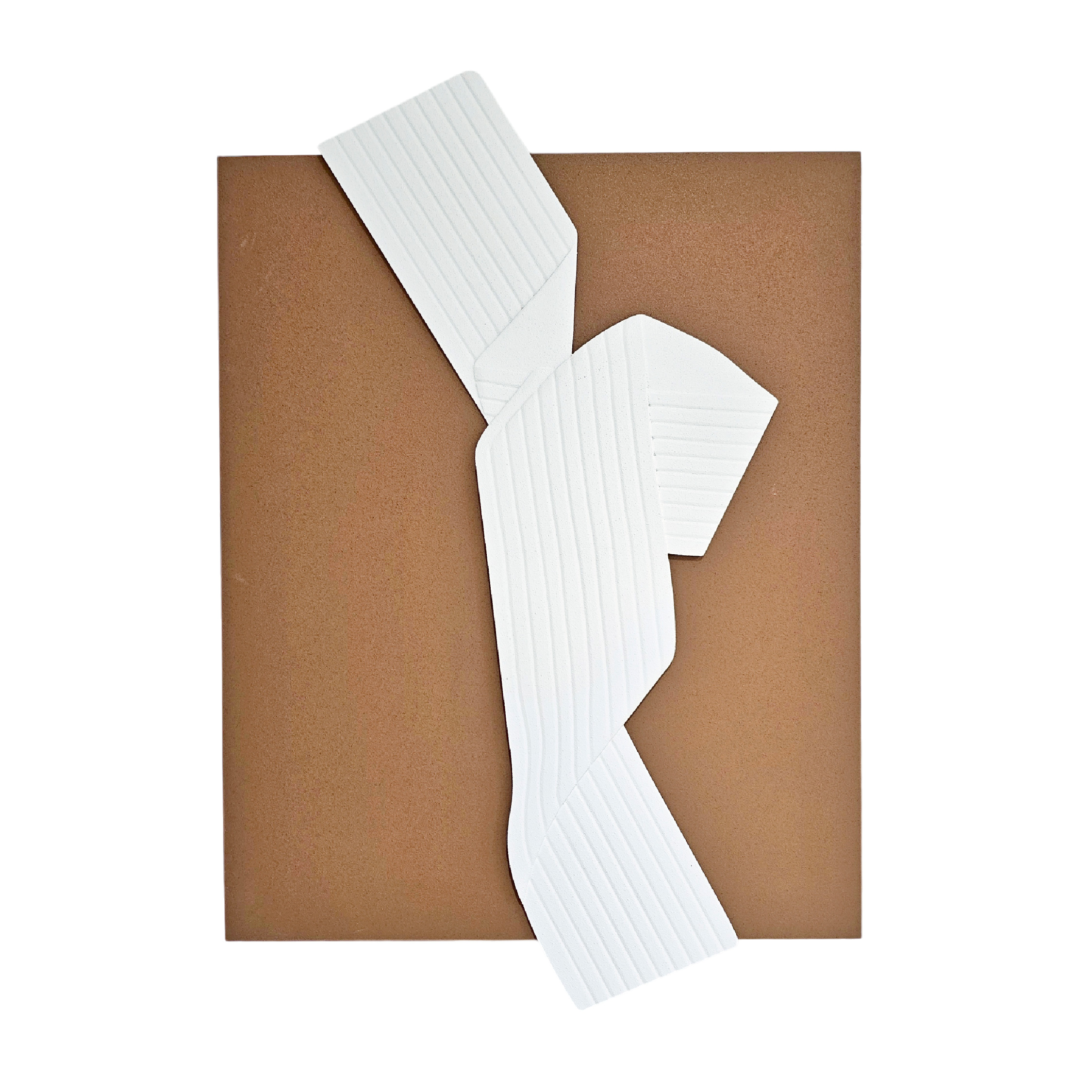 Cuadro con superposición de una pieza tipo franja en madera blanca con textura, logrando una composición singular.