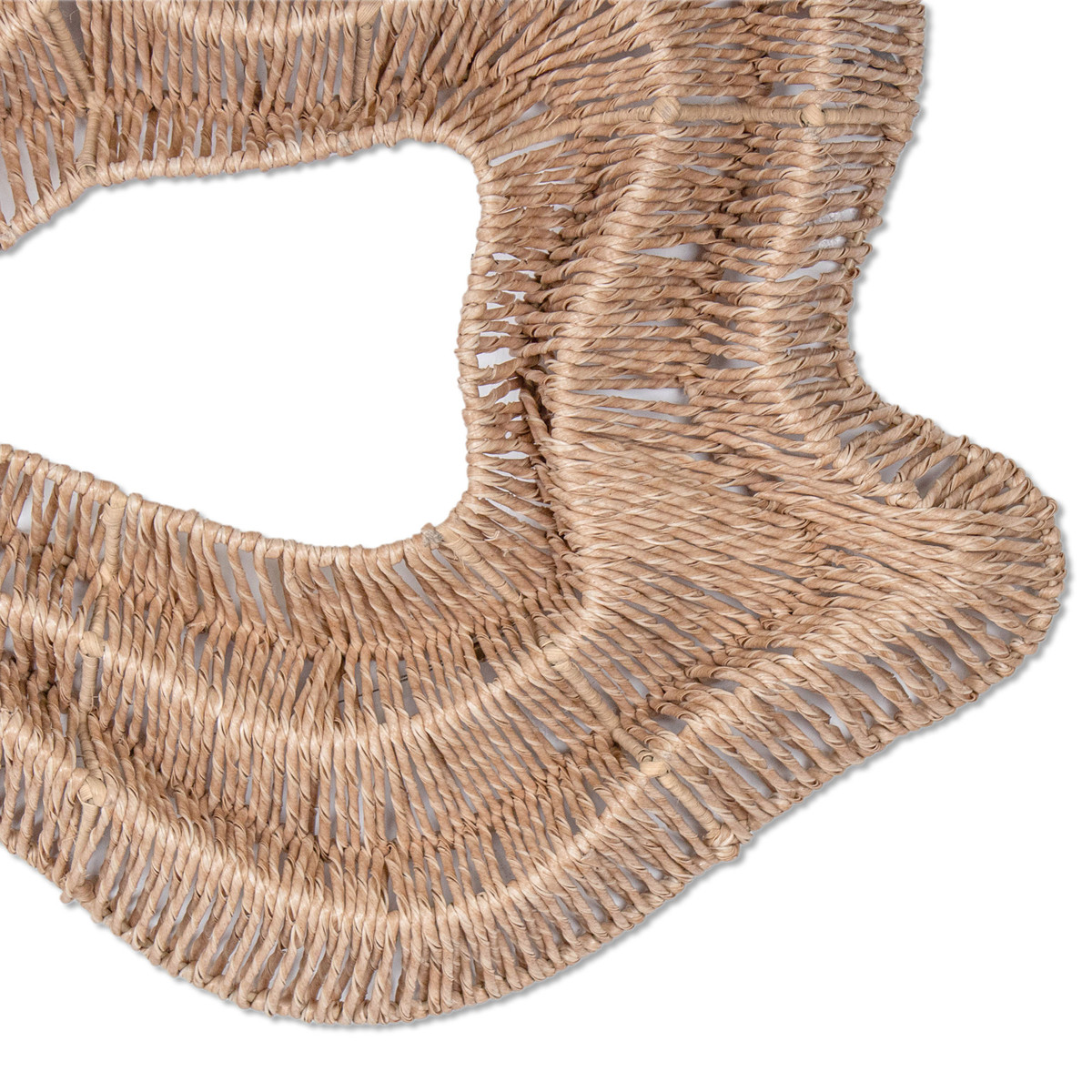 El accesorio está fabricado en aluminio de alta calidad, con una estructura ligera pero resistente. Combina perfectamente con rattan sintético, añadiendo una textura natural y cálida a tu pared. La fusión de estos materiales crea un diseño innovador que hace del accesorio versátil y elegante.