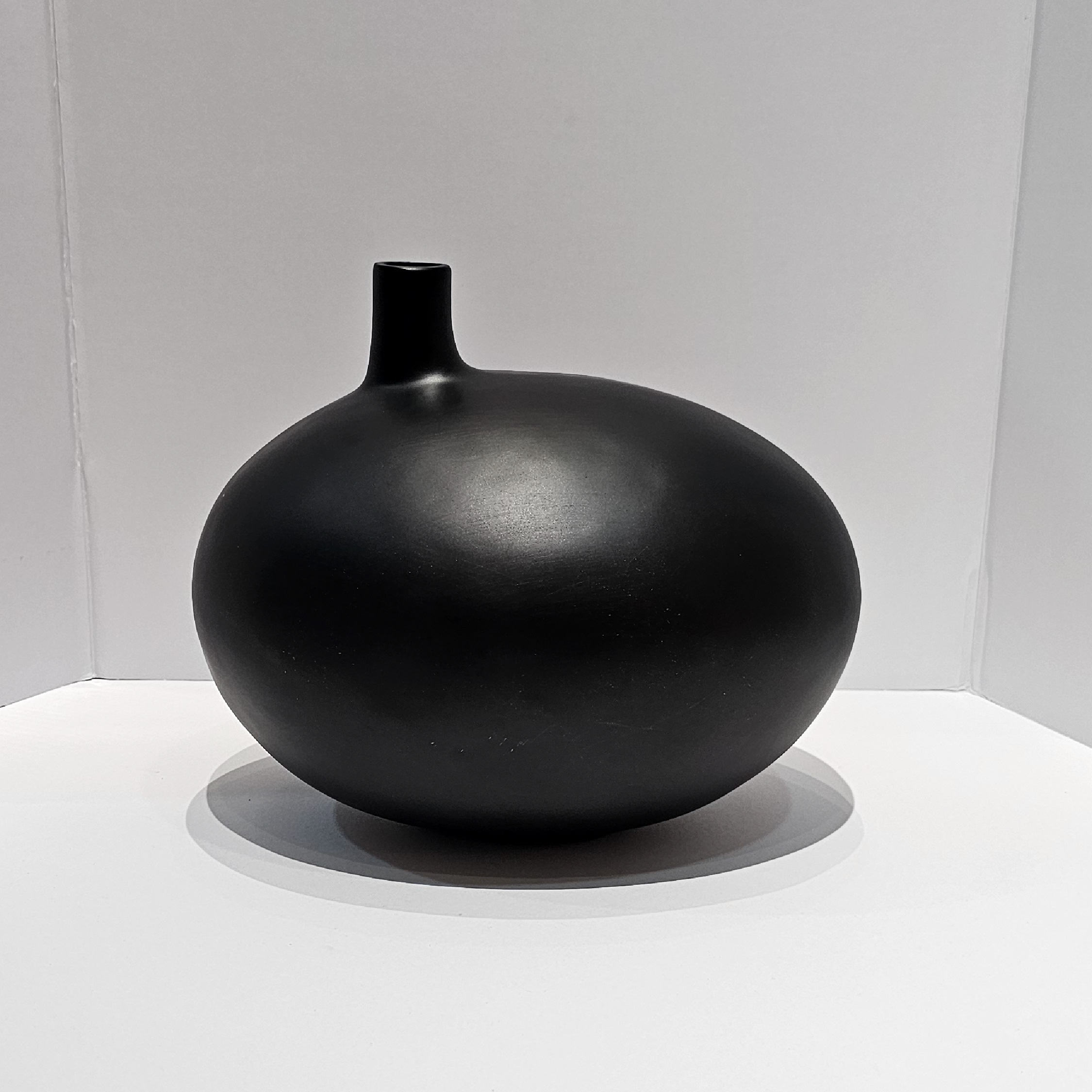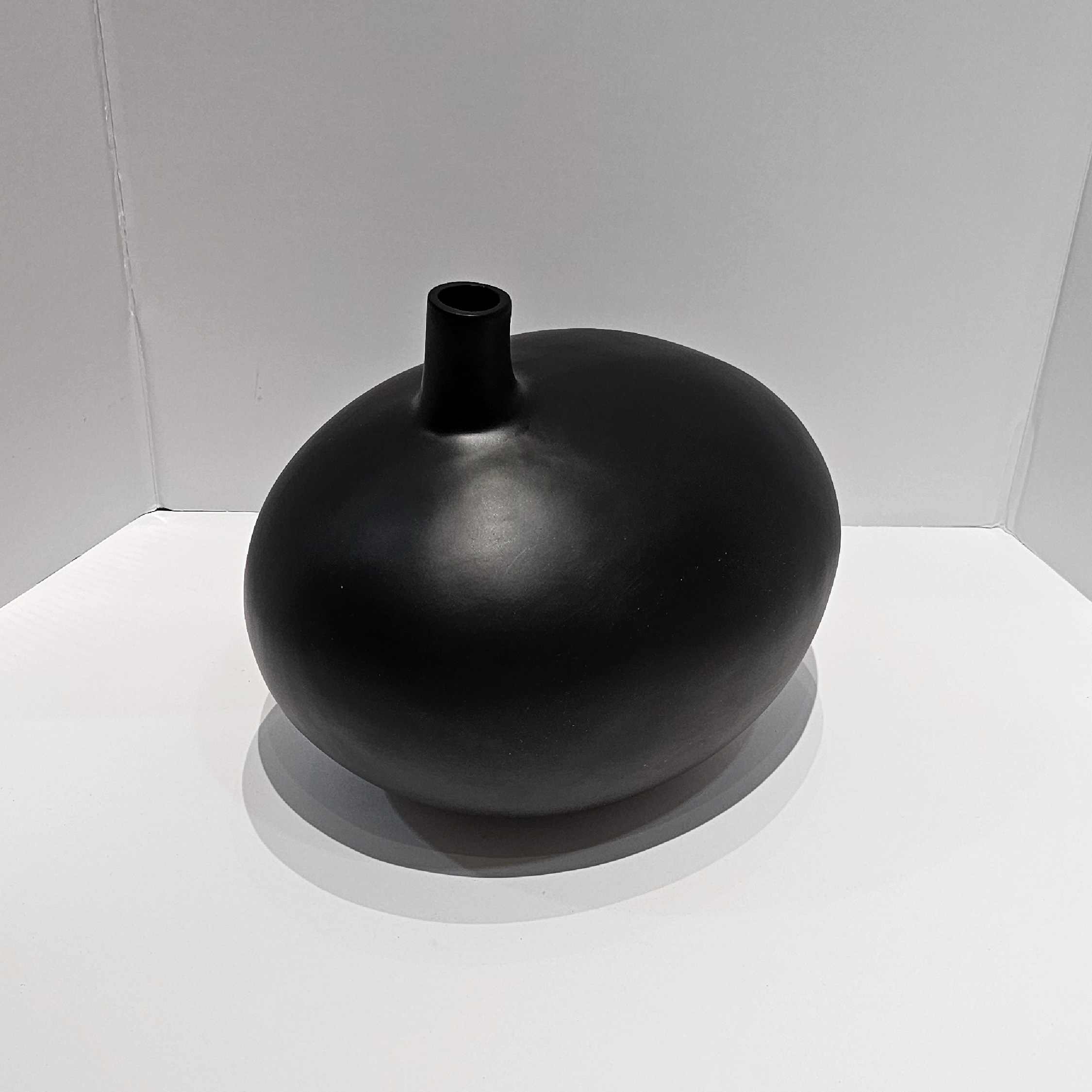 El pequeño orificio superior permite colocar una flor única, ramas secas o simplemente lucirse como objeto de diseño escultórico por sí solo. Su forma ovalada y baja aporta balance visual y textura a mesas de centro, consolas o repisas.