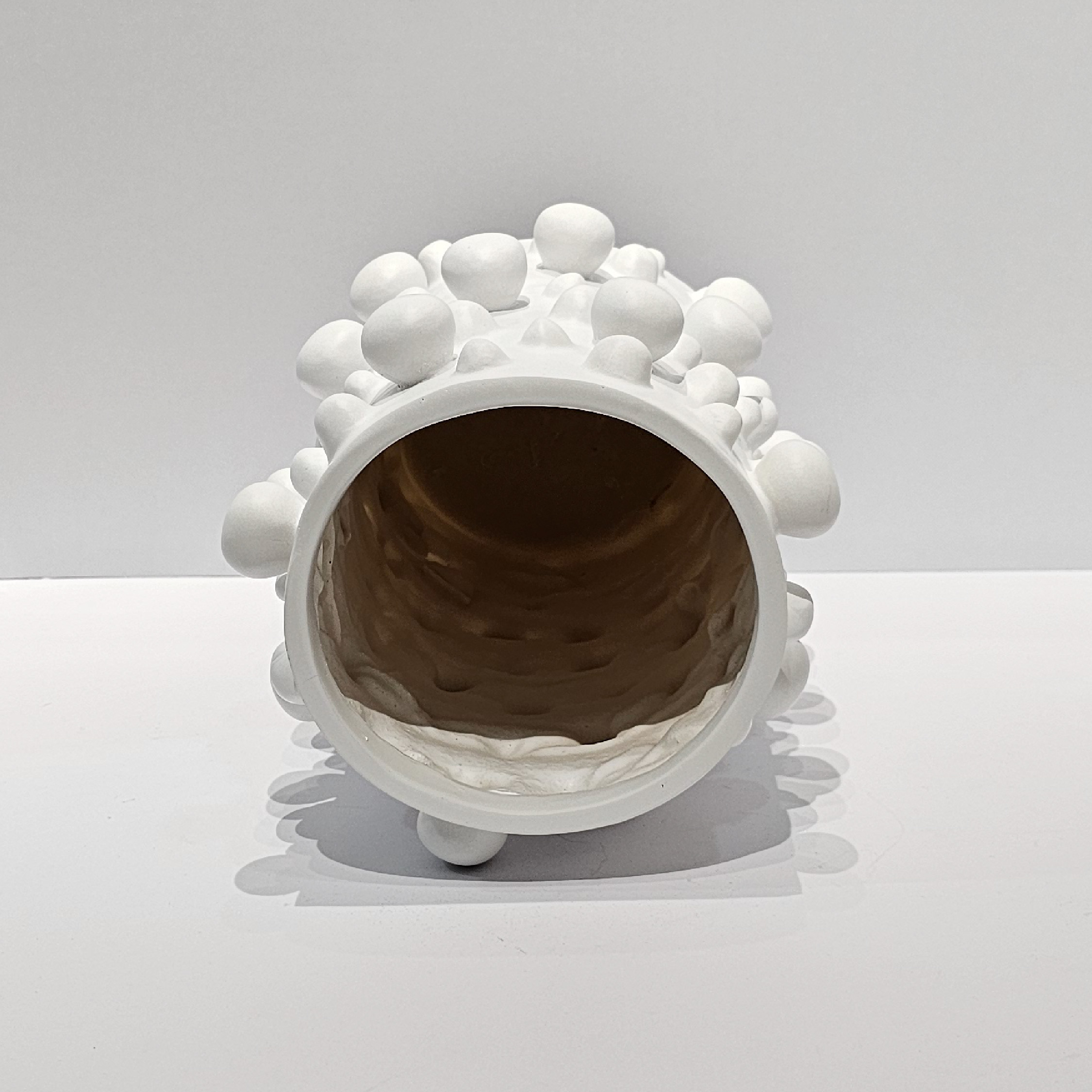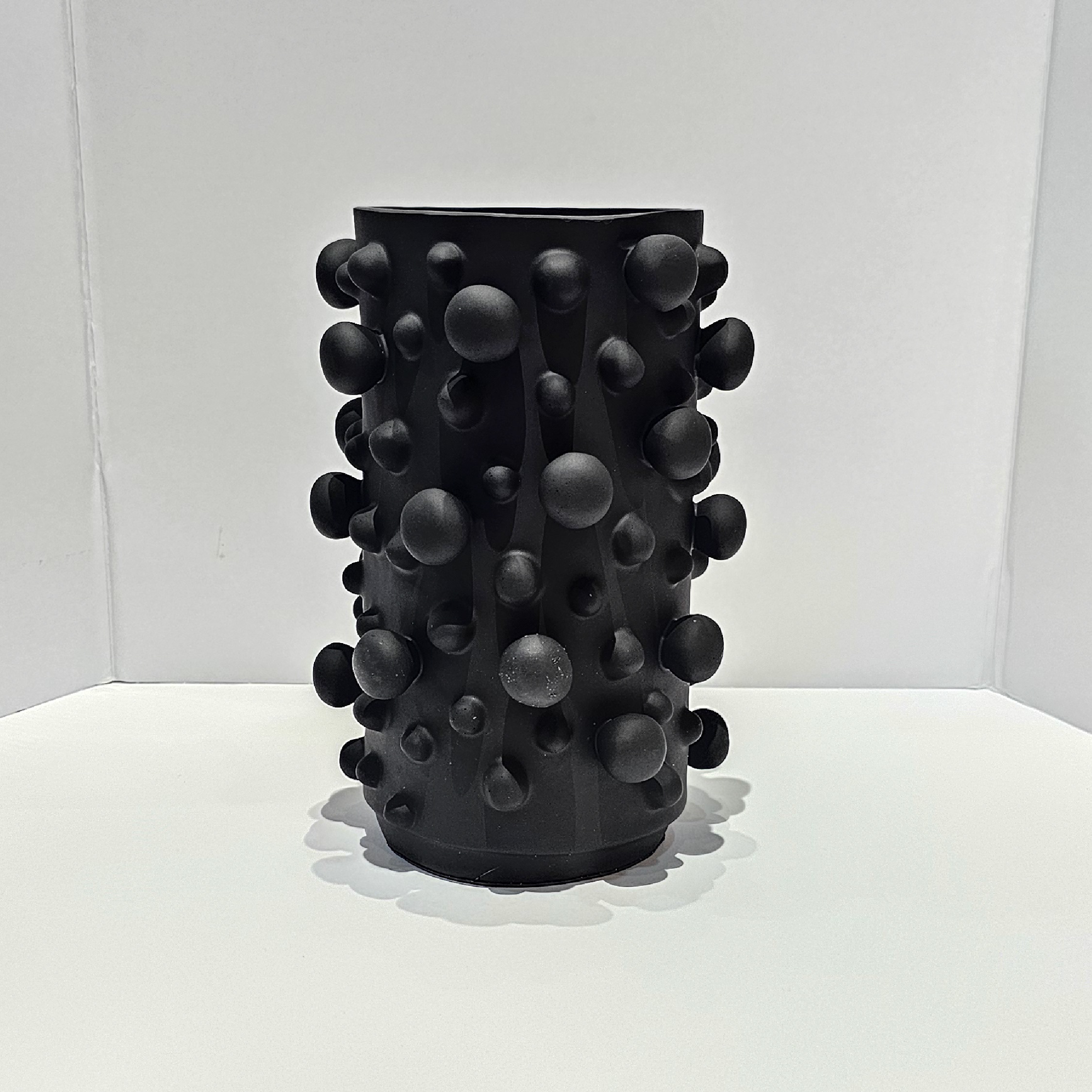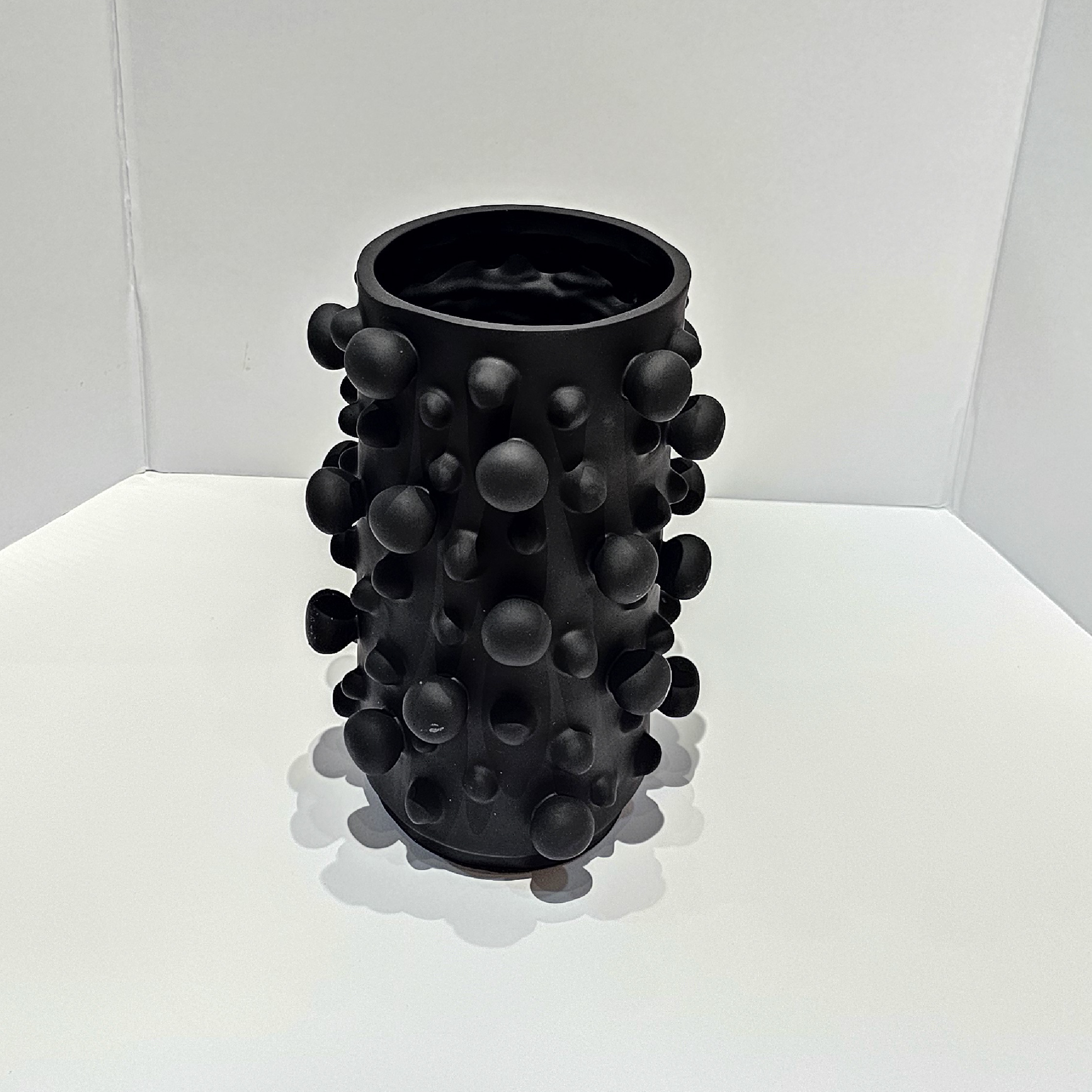 Florero con diseño de borlas extravagantes que sobresalen, creando un diseño único y lleno de carácter.