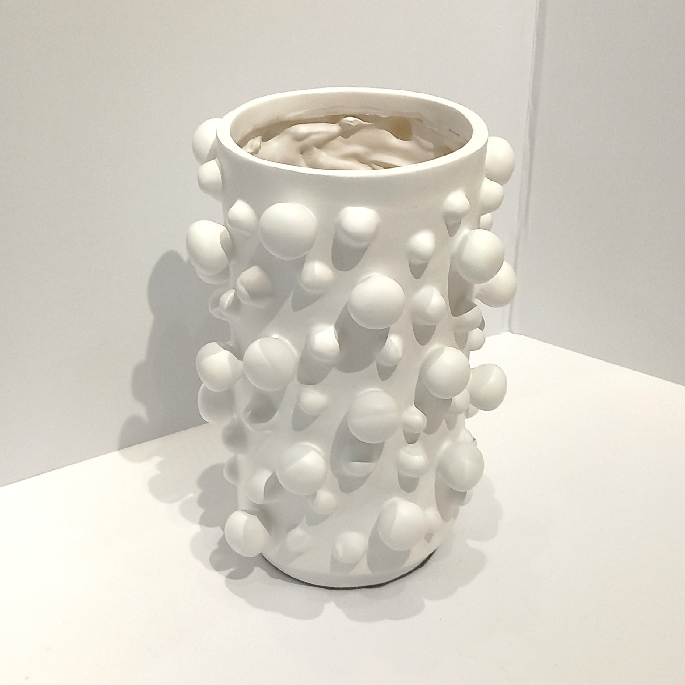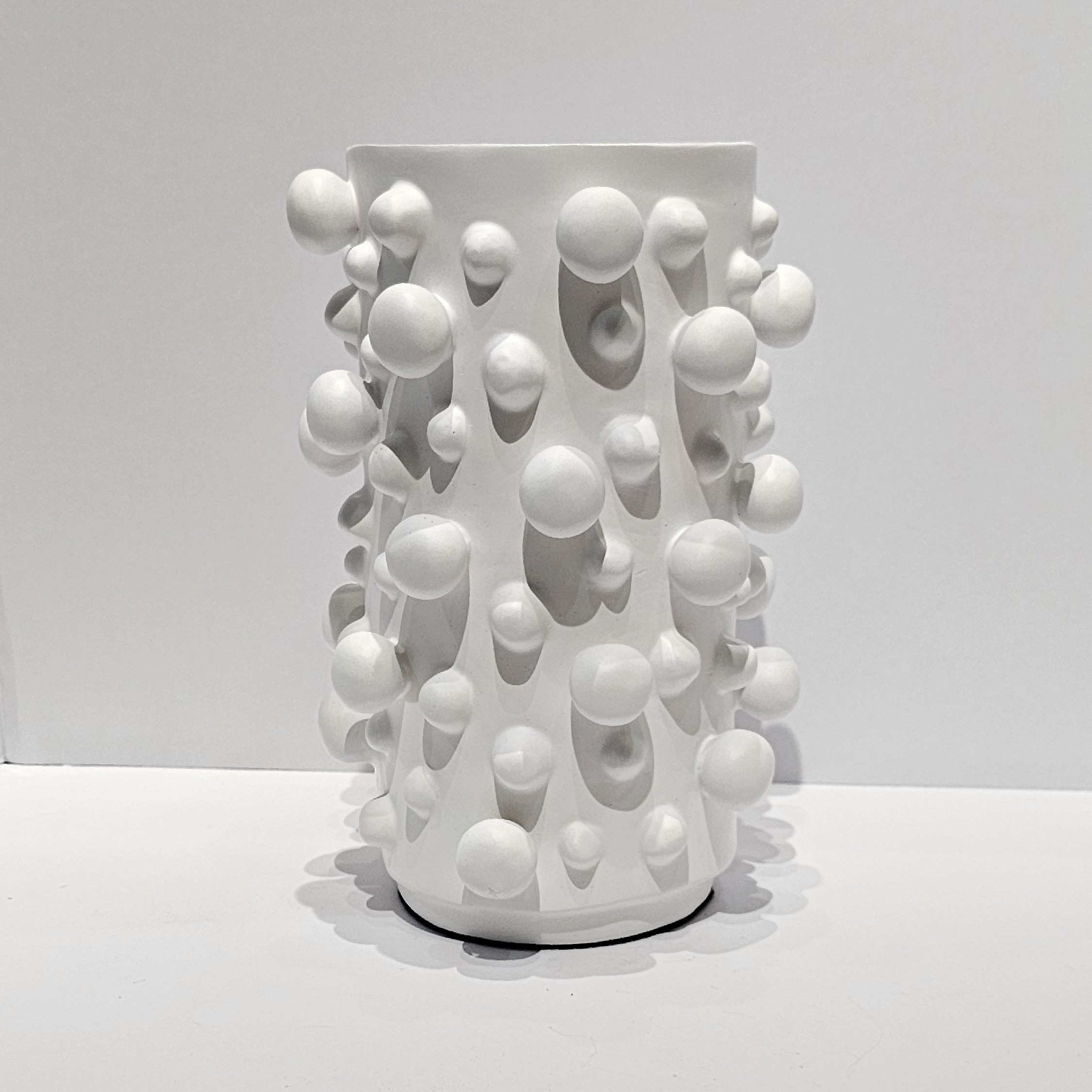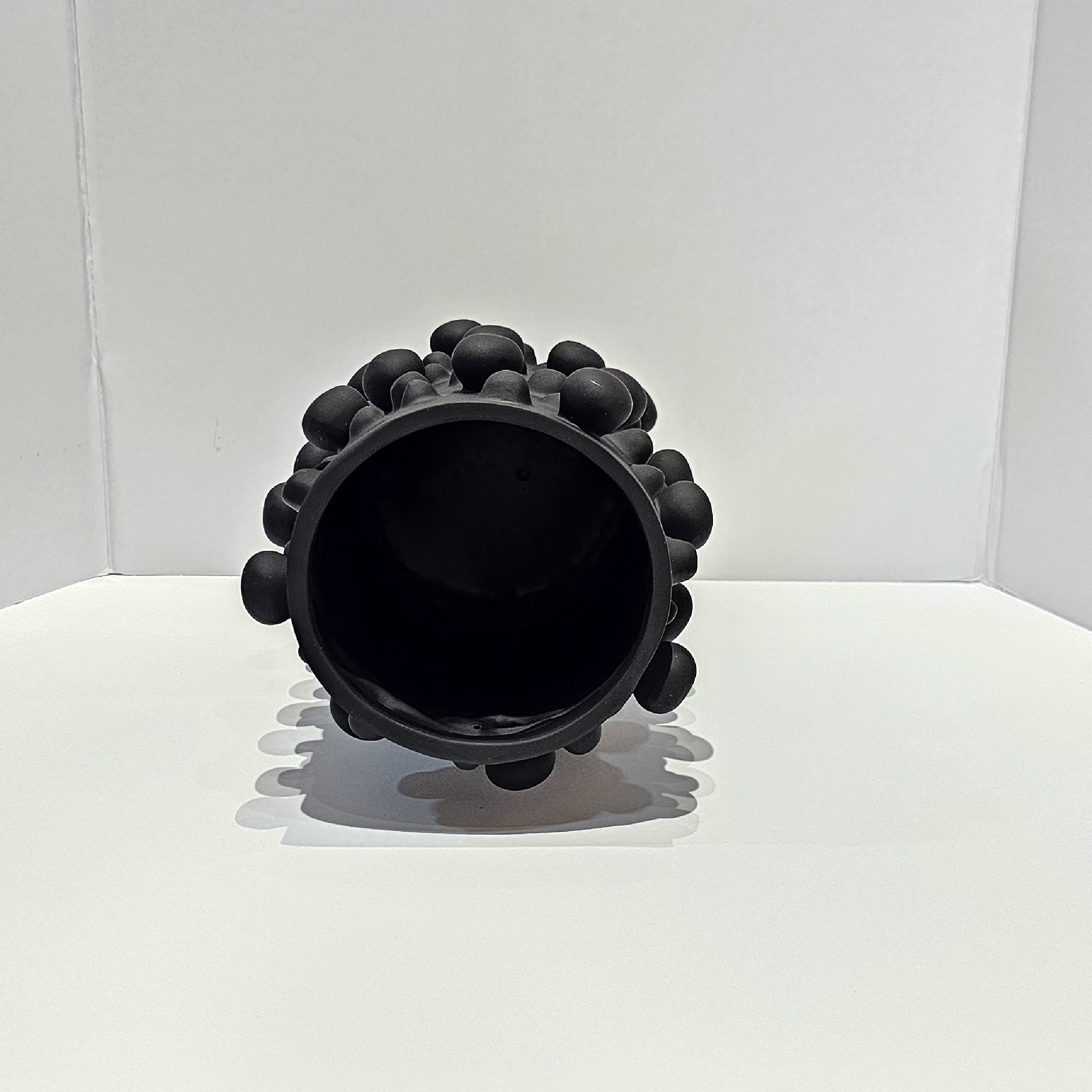Florero con diseño de borlas extravagantes que sobresalen, creando un diseño único y lleno de carácter.