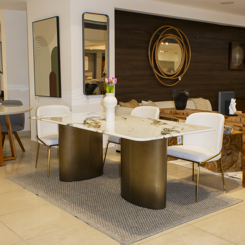 Ideal para compartir en familia y con amigos, esta mesa combina materiales de alta calidad con un diseño refinado, convirtiéndose en el centro de atención de cualquier comedor.