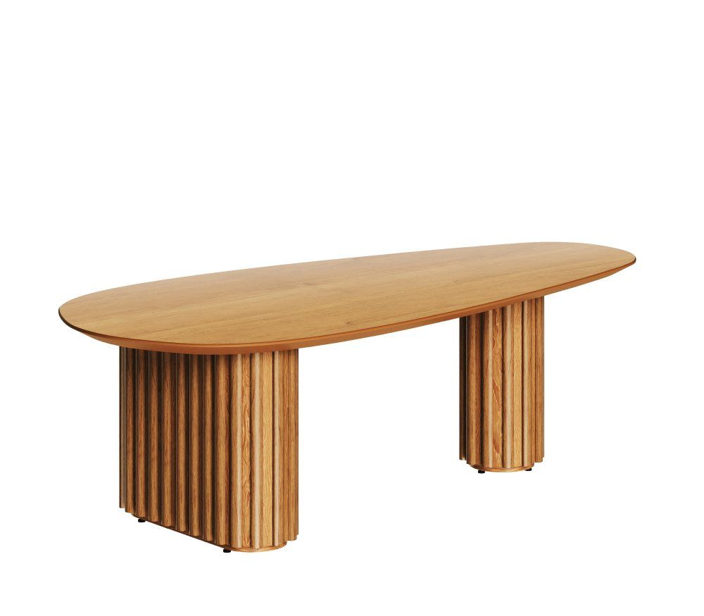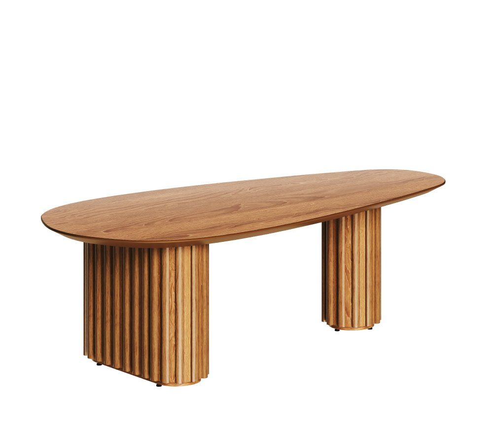 Esta mesa de centro integra estilos clásicos y en tendencia. Su sobre cuenta con una forma original que se asimila a una avellana, mientras su soporte la complementa con forma redonda y relieve en su base. Tiene una forma orgánica, adecuada para espacios sutiles y agradables.