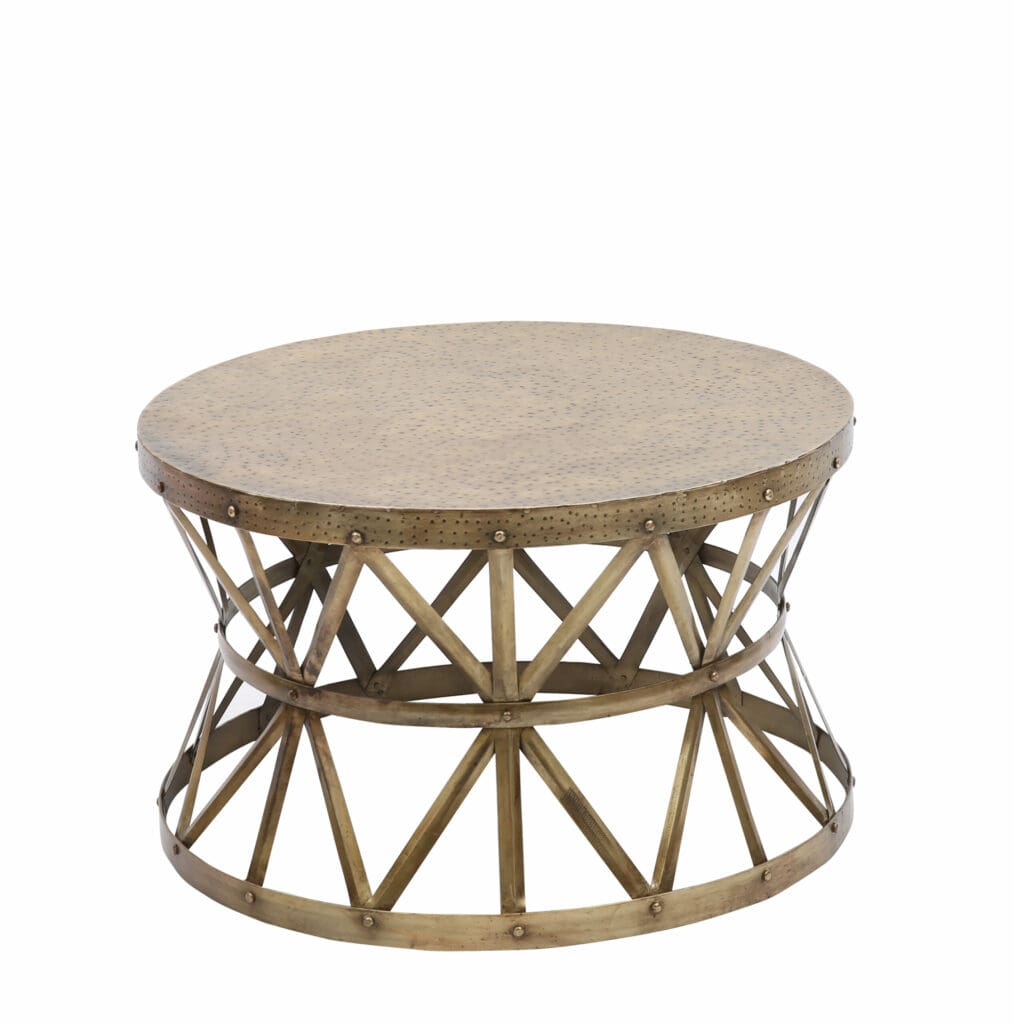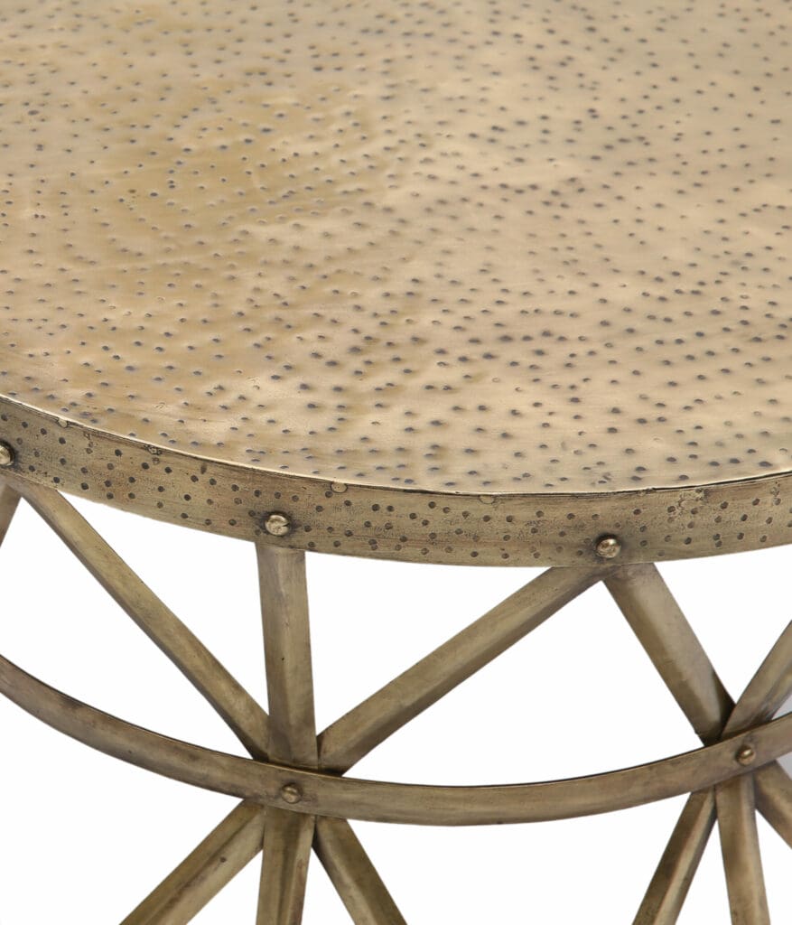 La mesa Majdi de metal martillado es ideal para espacios interiores, aportando atractivo y realce visual a tu sala de estar o lobby. Además, su acabado en latón le otorga un toque de elegancia y sofisticación.