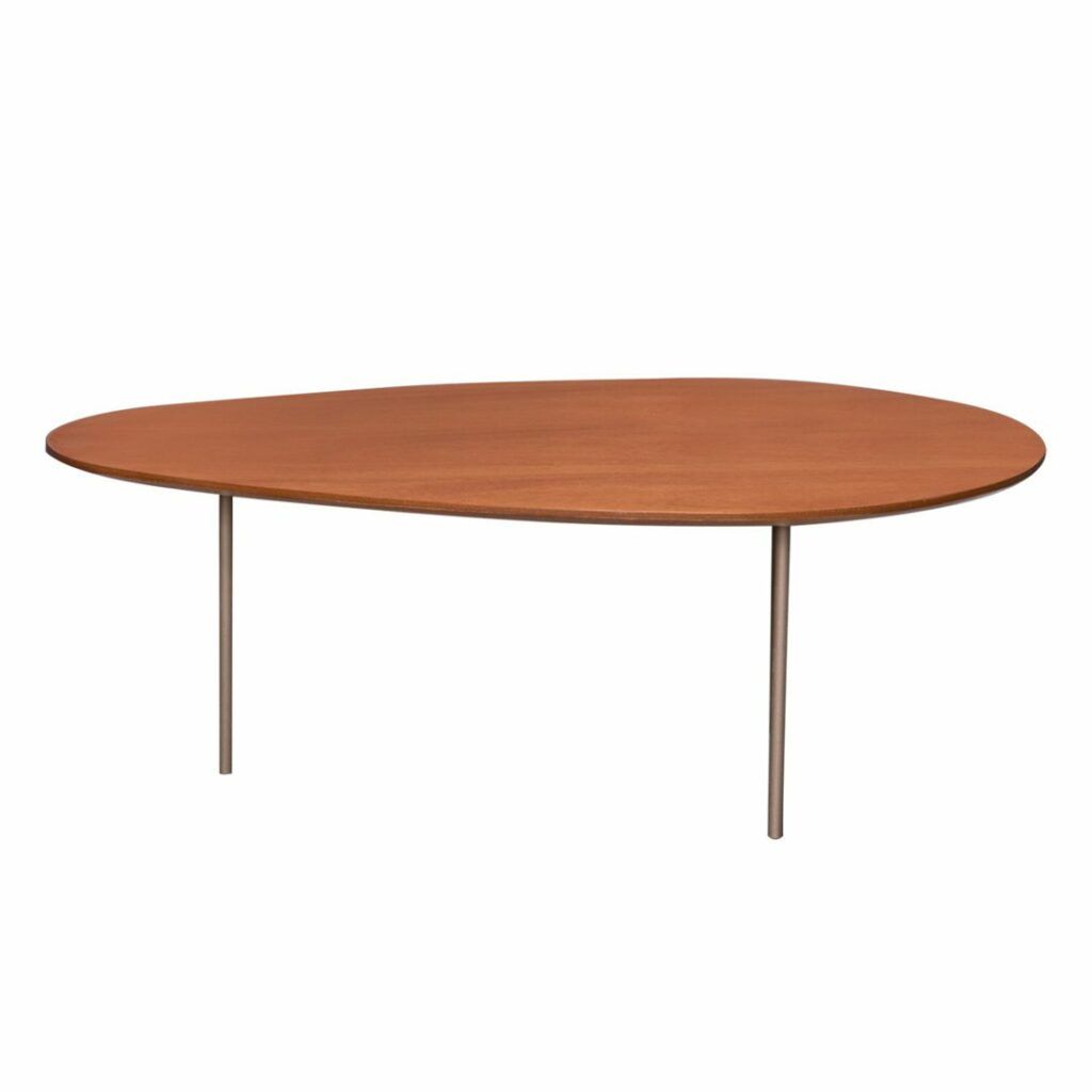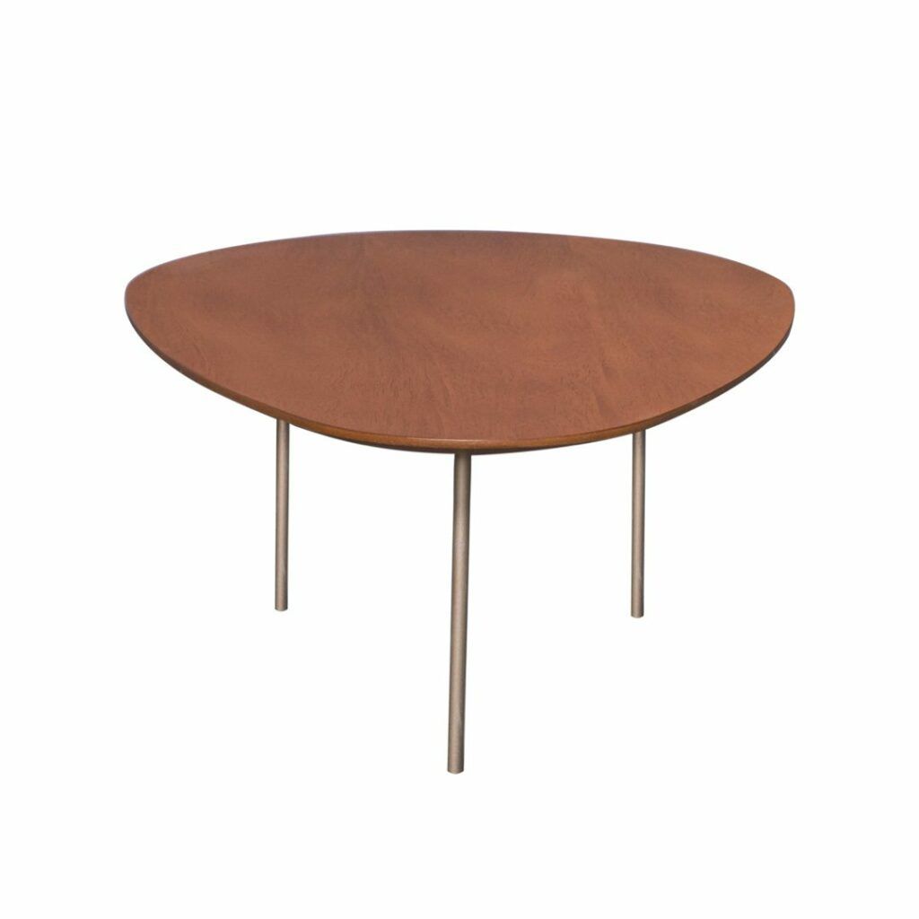 La mesa de centro Pilar es un testimonio de elegancia y modernidad con su diseño triangular redondeado y estructura ligera, aporta un toque refinado y funcional a cualquier espacio
