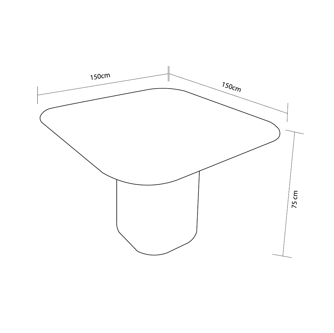 Aporta una sensación de modernidad sobria, perfecta para ambientes que buscan un equilibrio entre diseño contemporáneo y calidez visual. Gracias a sus proporciones generosas de 150 cm x 150 cm, permite acomodar cómodamente hasta 8 personas, siendo ideal tanto para cenas formales como para reuniones informales con familia o amigos.