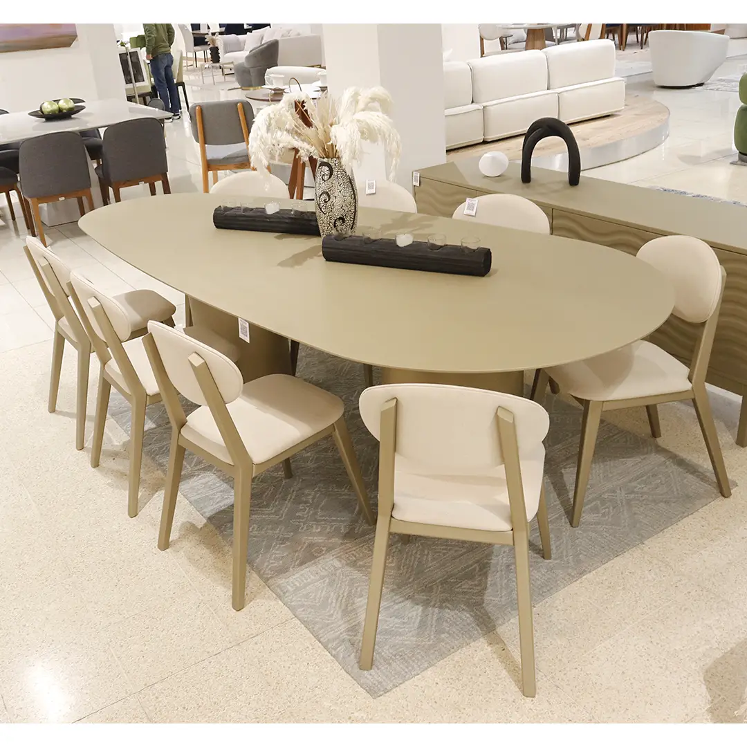 La mesa de comedor Scarlet 270 (Sin Vidrio) es una síntesis perfecta de elegancia y modernidad. Con su diseño triangular redondeado y estructura liviana, brinda un toque refinado y funcional a cualquier espacio comedor.