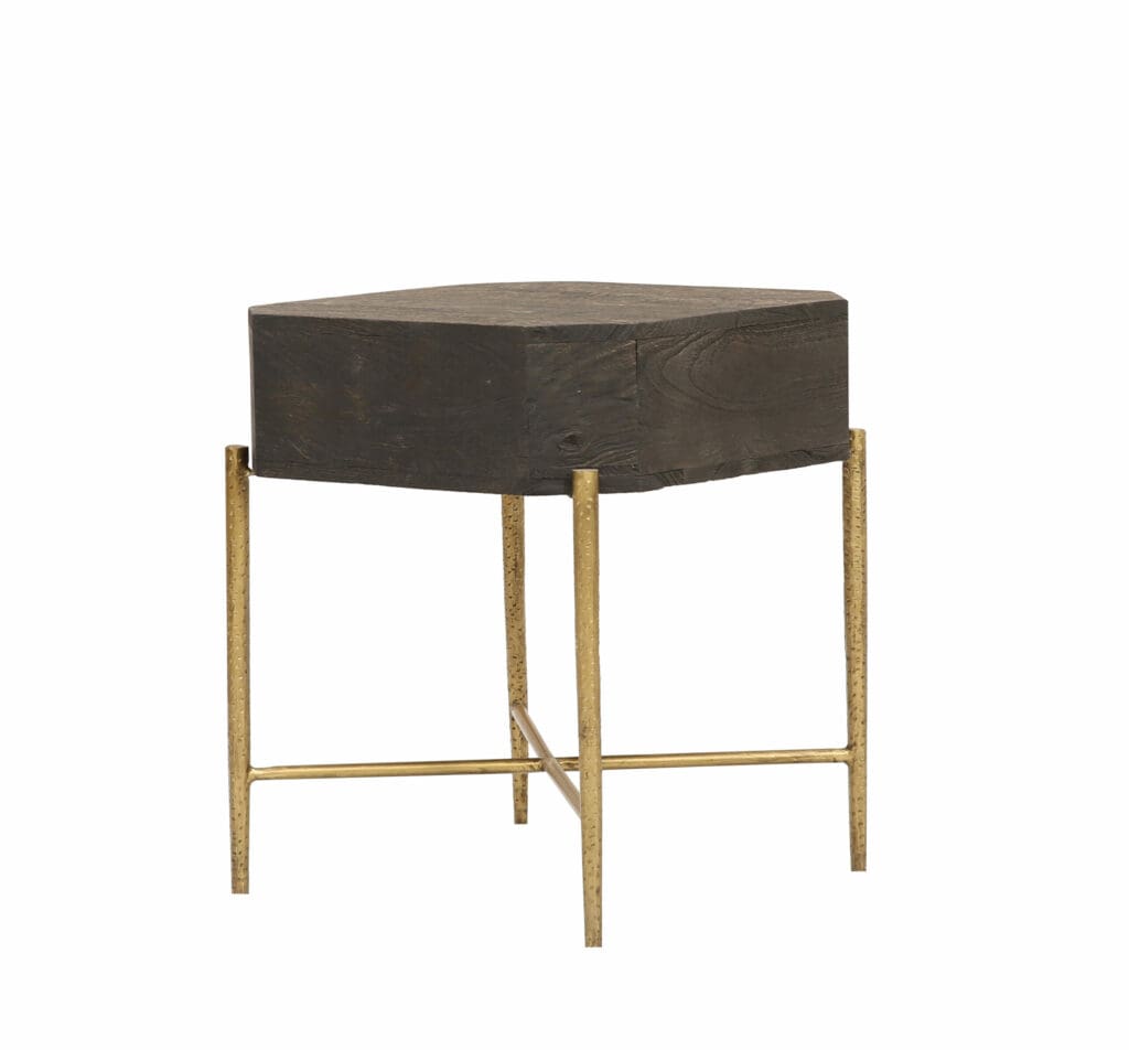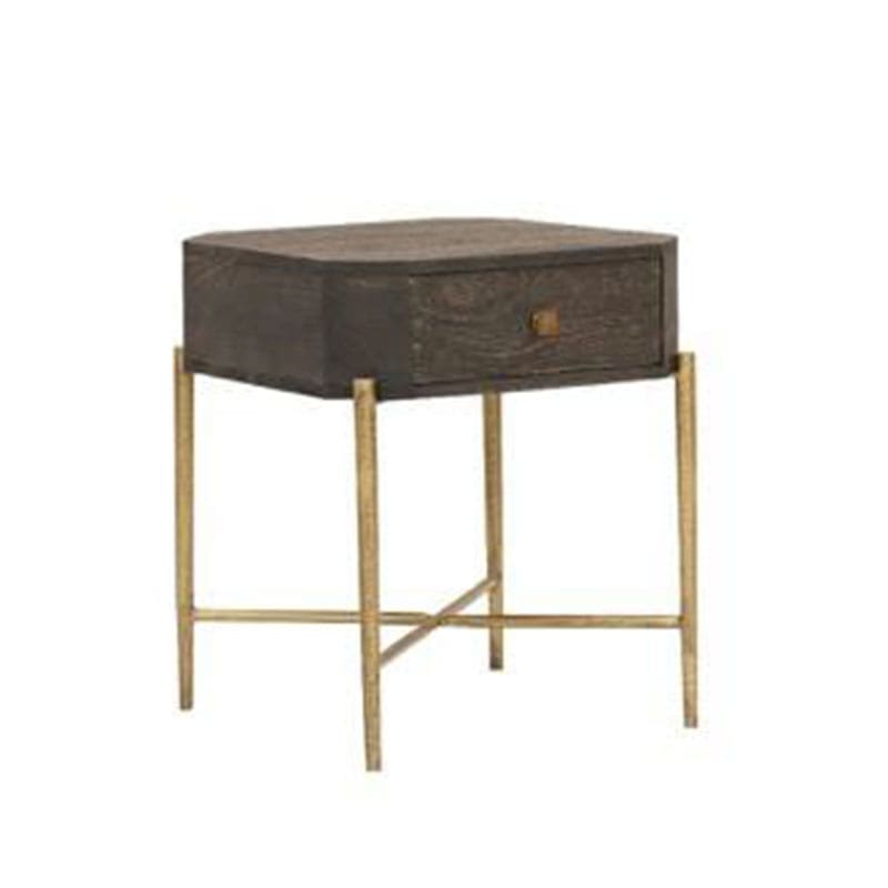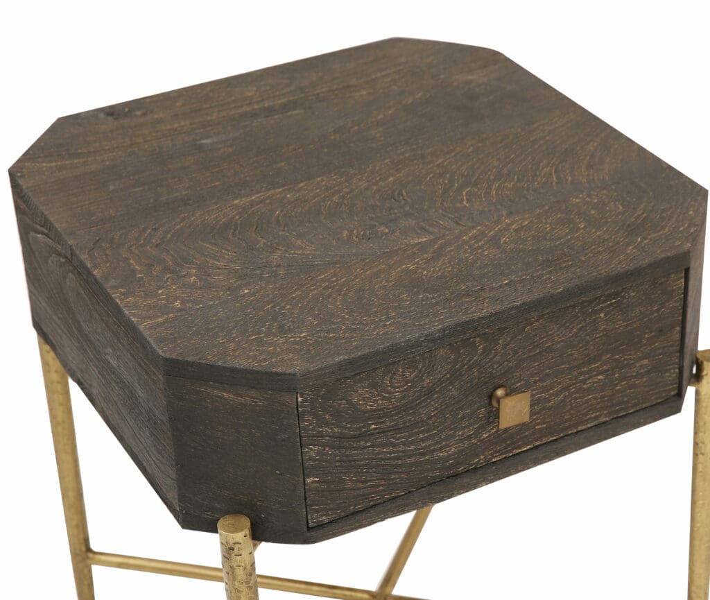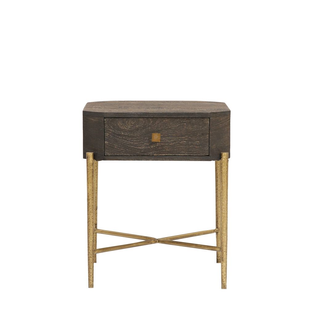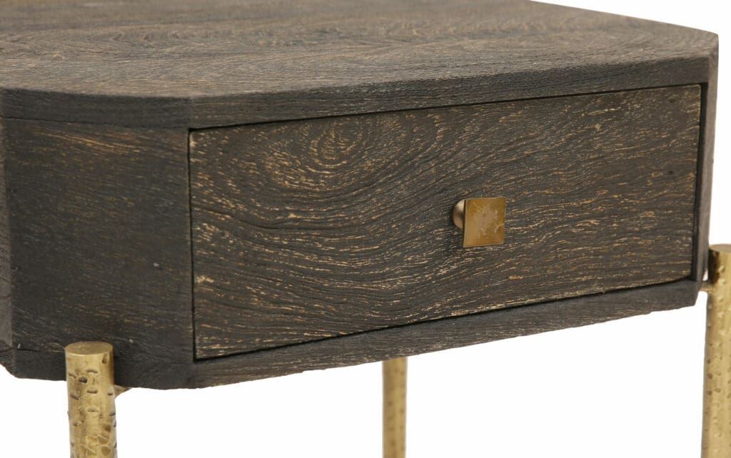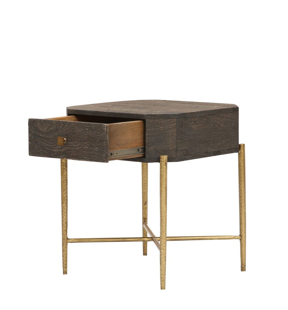 SIDE TABLE WITH 1 DRAWER AND HAMMERED METAL BASE