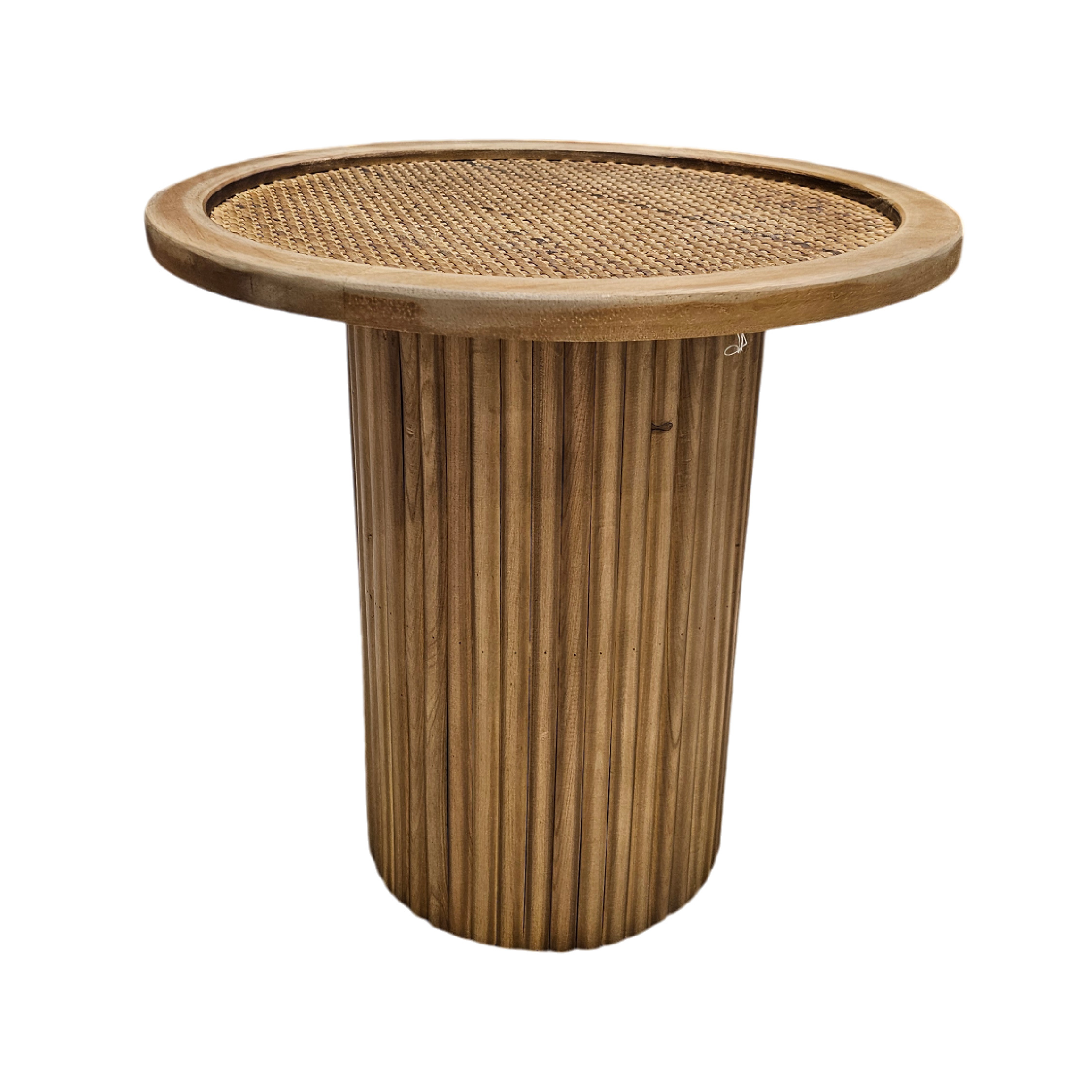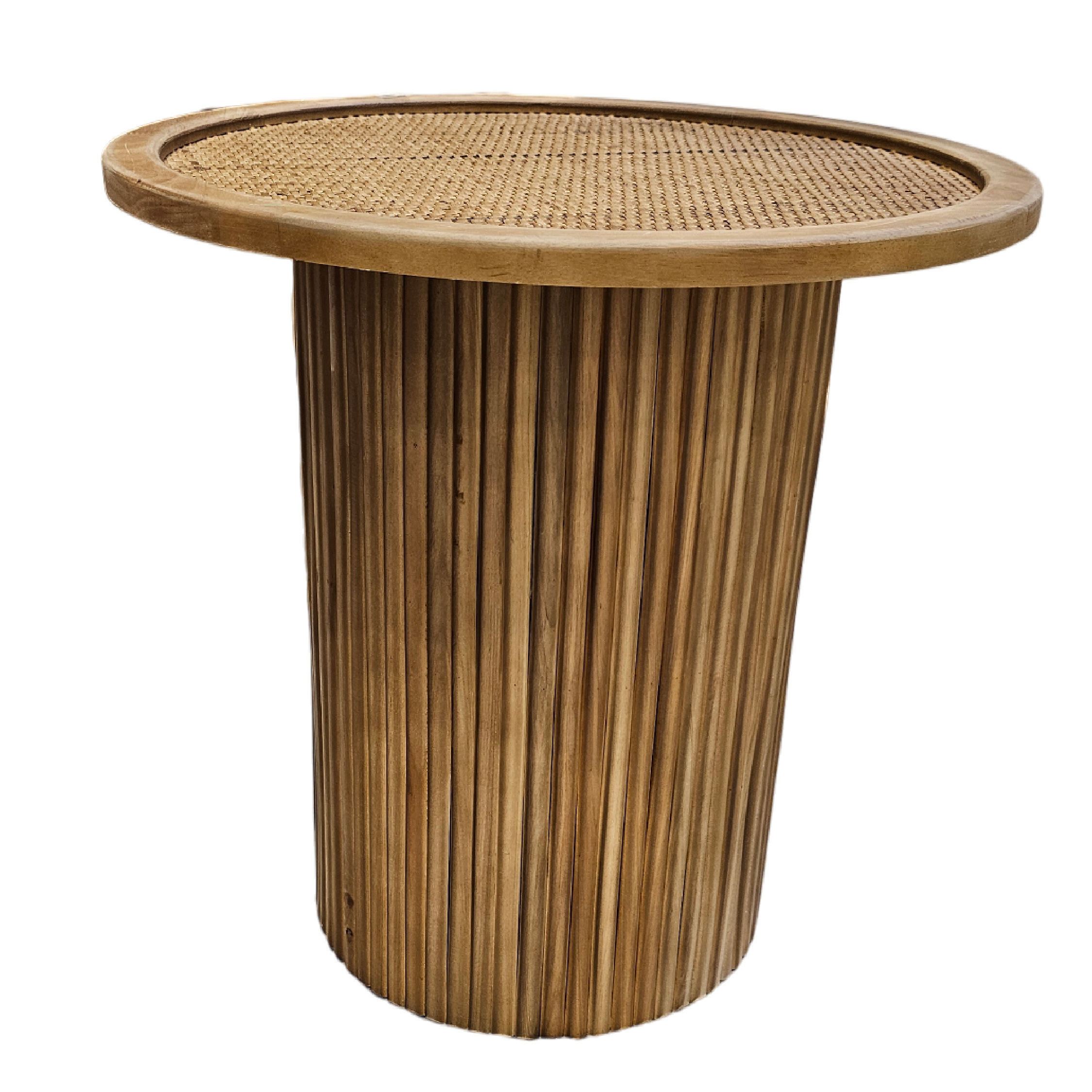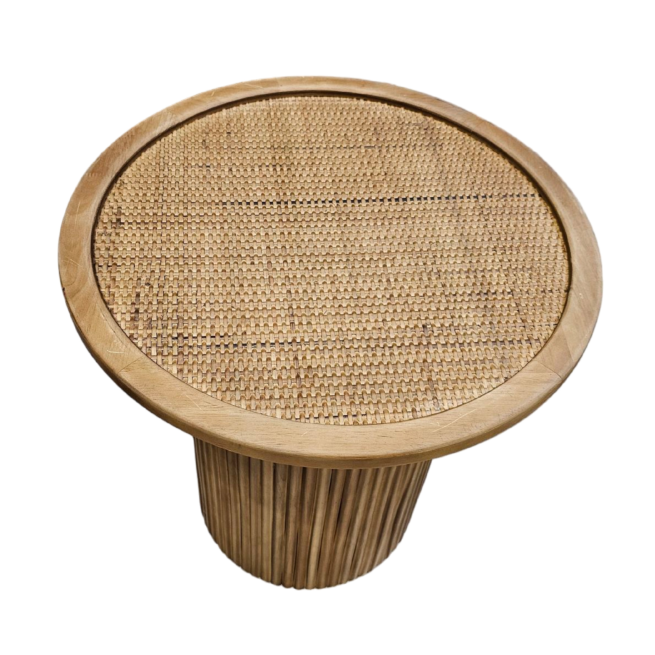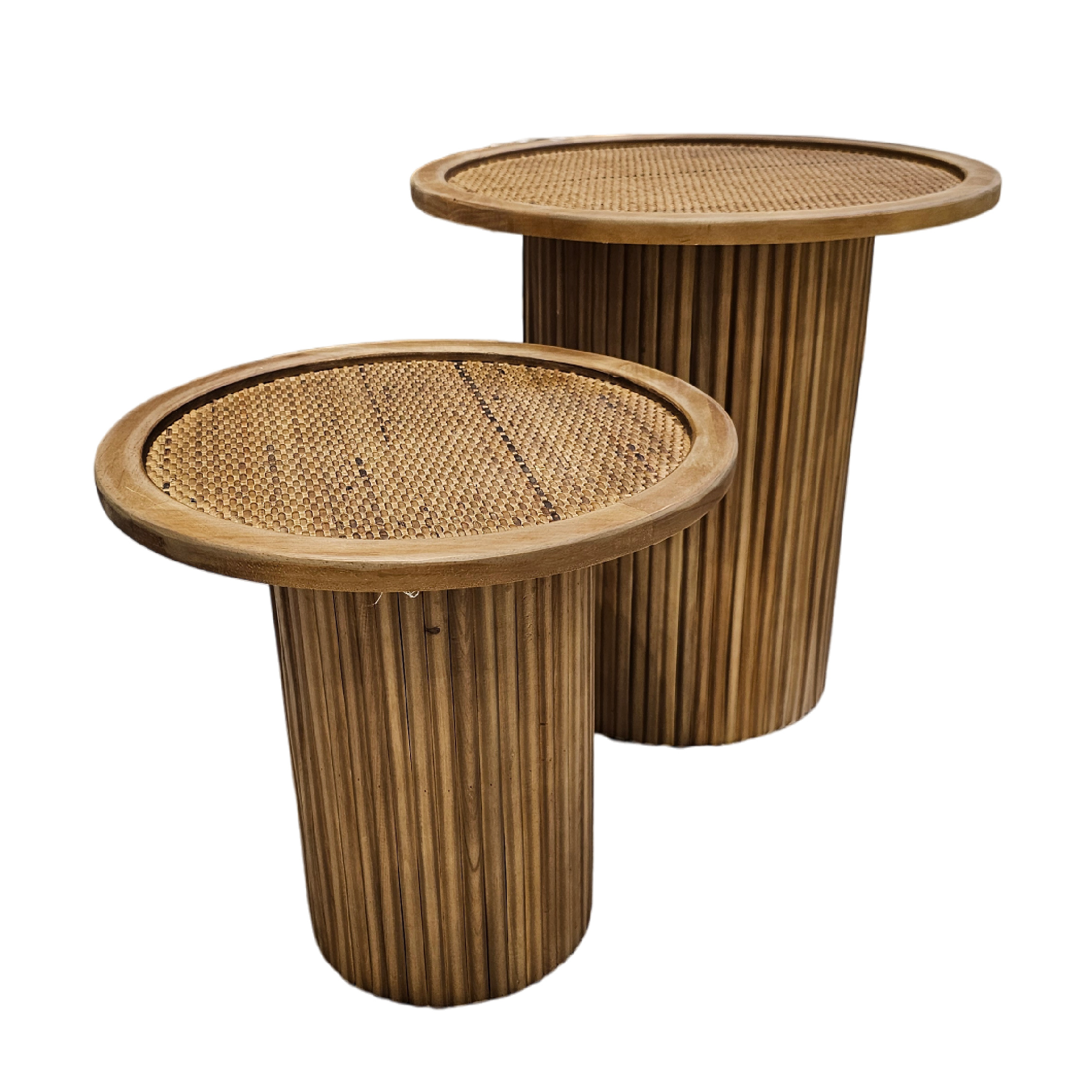 Mesas en madera con detalles y finos acabados, tapa con enchape tipo esterilla.