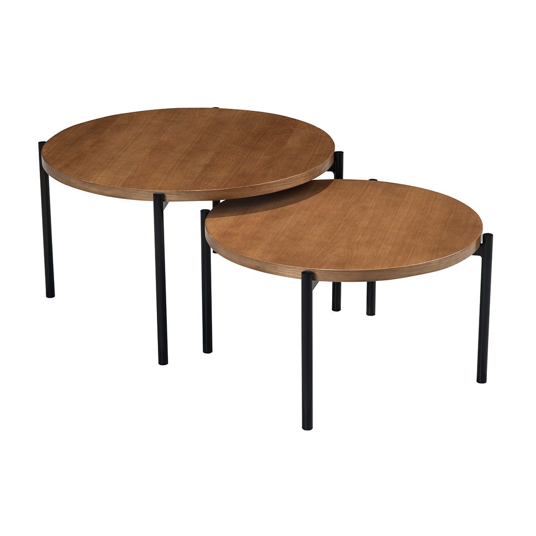 Este set incluye dos mesas de diferentes alturas, permitiendo versatilidad en la decoración y funcionalidad en su uso.