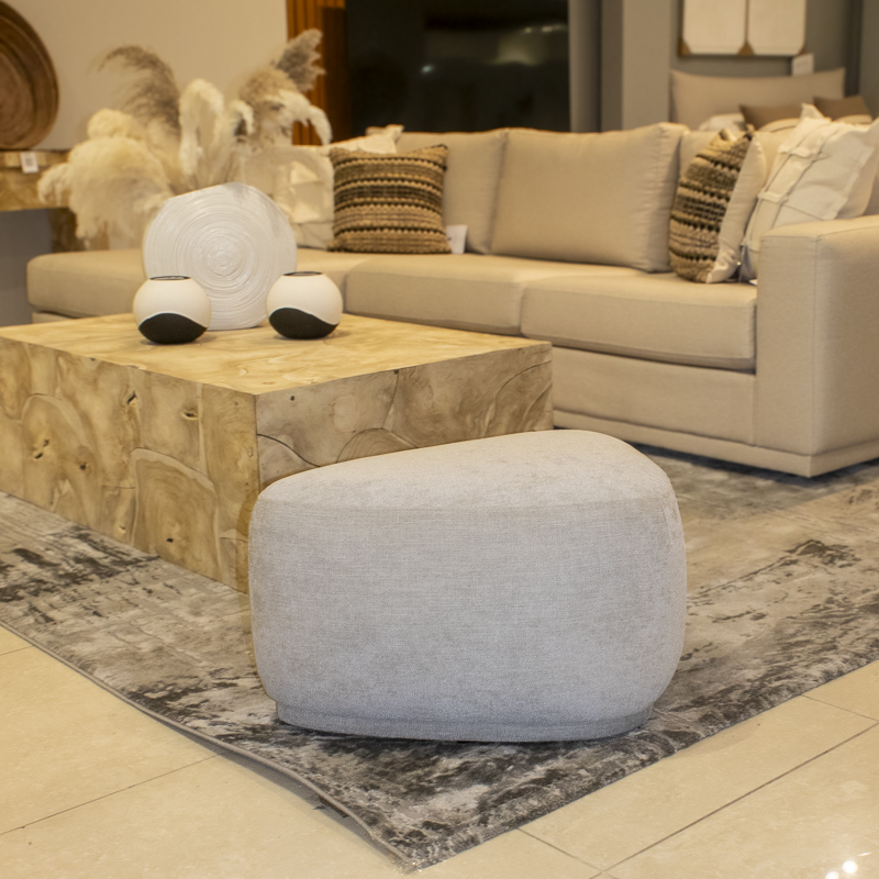 Disponible en tonos amarillo, beige, gris medio, ocre y Offwhite, este ottoman se convierte en un complemento ideal para cualquier ambiente. Además, está disponible en dos tamaños para ajustarse a diferentes necesidades de espacio y funcionalidad.