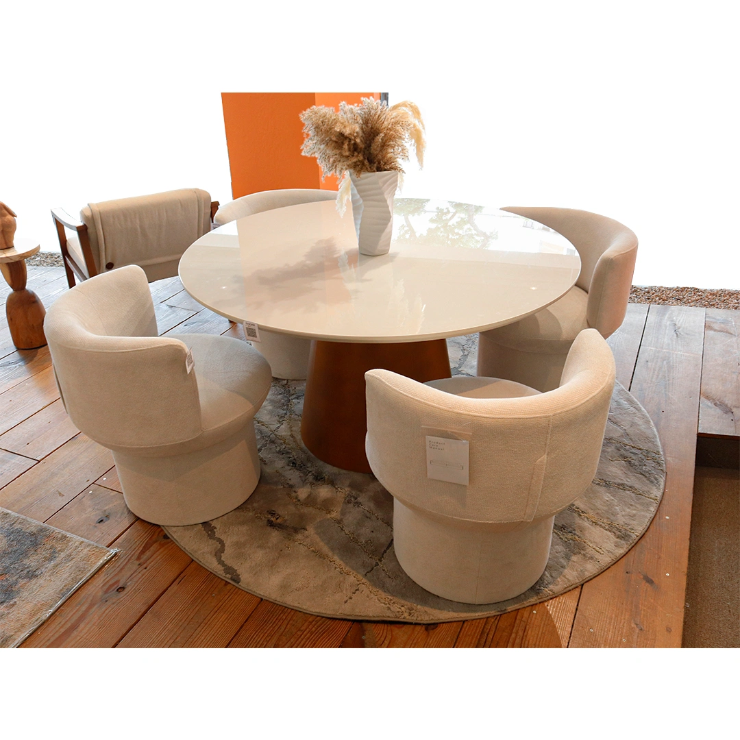 Tapizada en tela de alta calidad en color beige neutro, la Poltrona Ava ofrece un acabado duradero y fácil de combinar con diversos estilos de decoración. Es perfecta para espacios donde cada centímetro cuenta, adaptándose con facilidad a decoraciones minimalistas, modernas o incluso eclécticas. Su diseño curvilíneo y materiales seleccionados brindan una presencia sofisticada sin sacrificar funcionalidad.