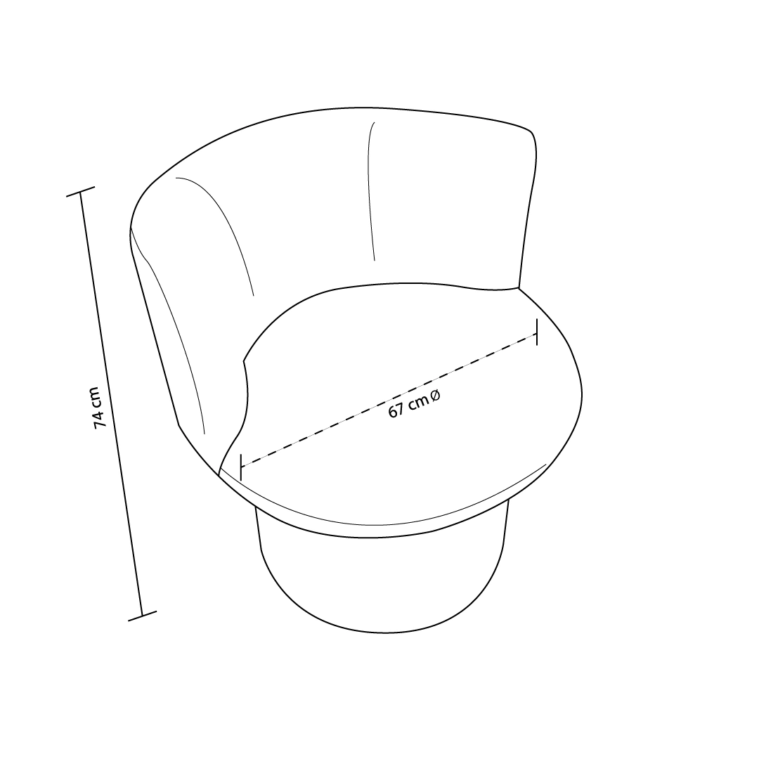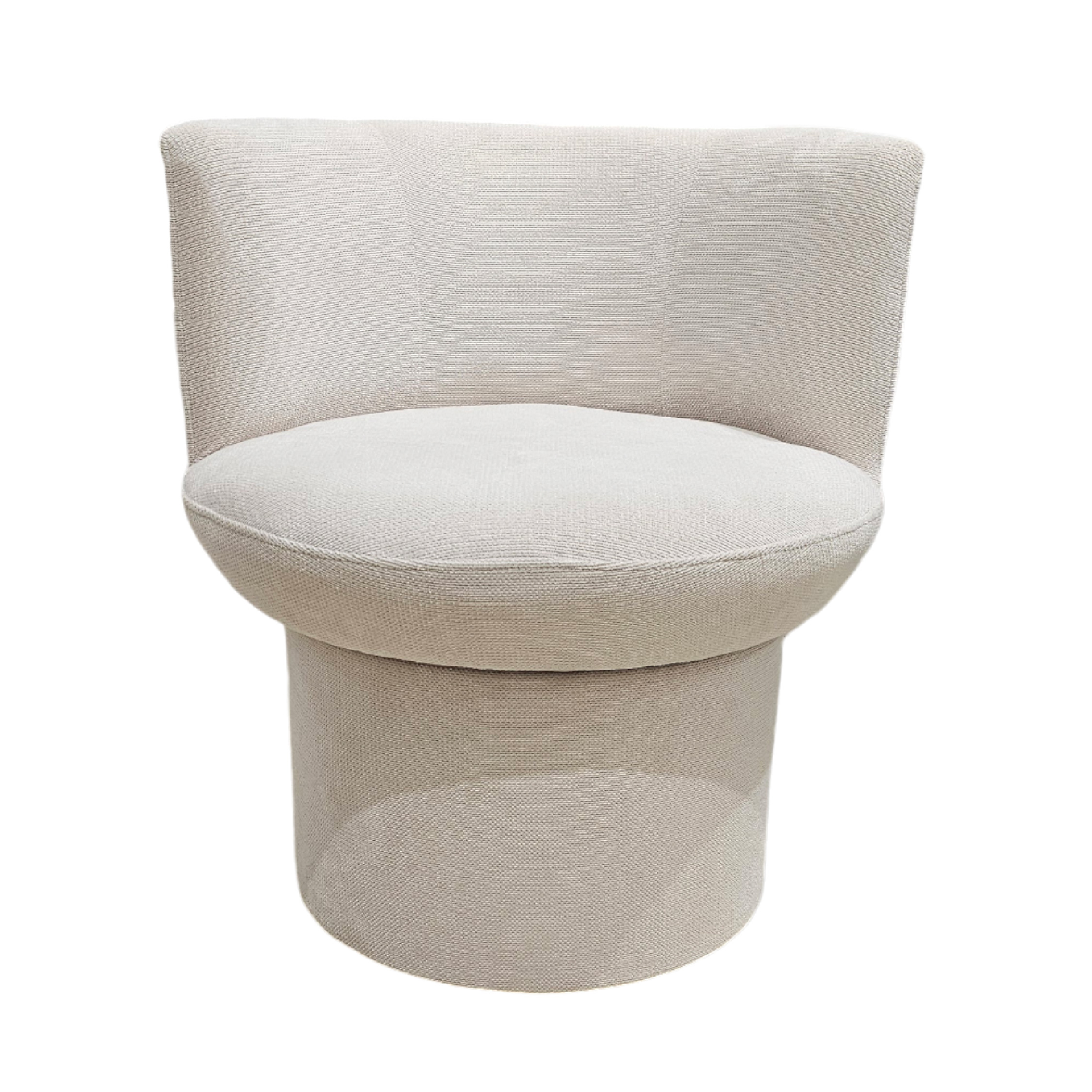 Nuestra Silla Poltrona Giratoria Ava es una pieza que destaca por su diseño compacto y versátil, ideal para complementar espacios modernos con un toque de elegancia. Su estructura giratoria y dimensiones bien equilibradas permiten su uso como silla de comedor o como asiento destacado en salas pequeñas.