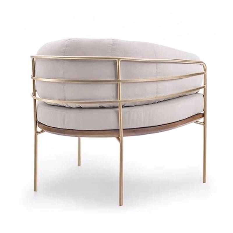 Poltrona con estructura en metal y cojines separados, elegante y contemporánea.