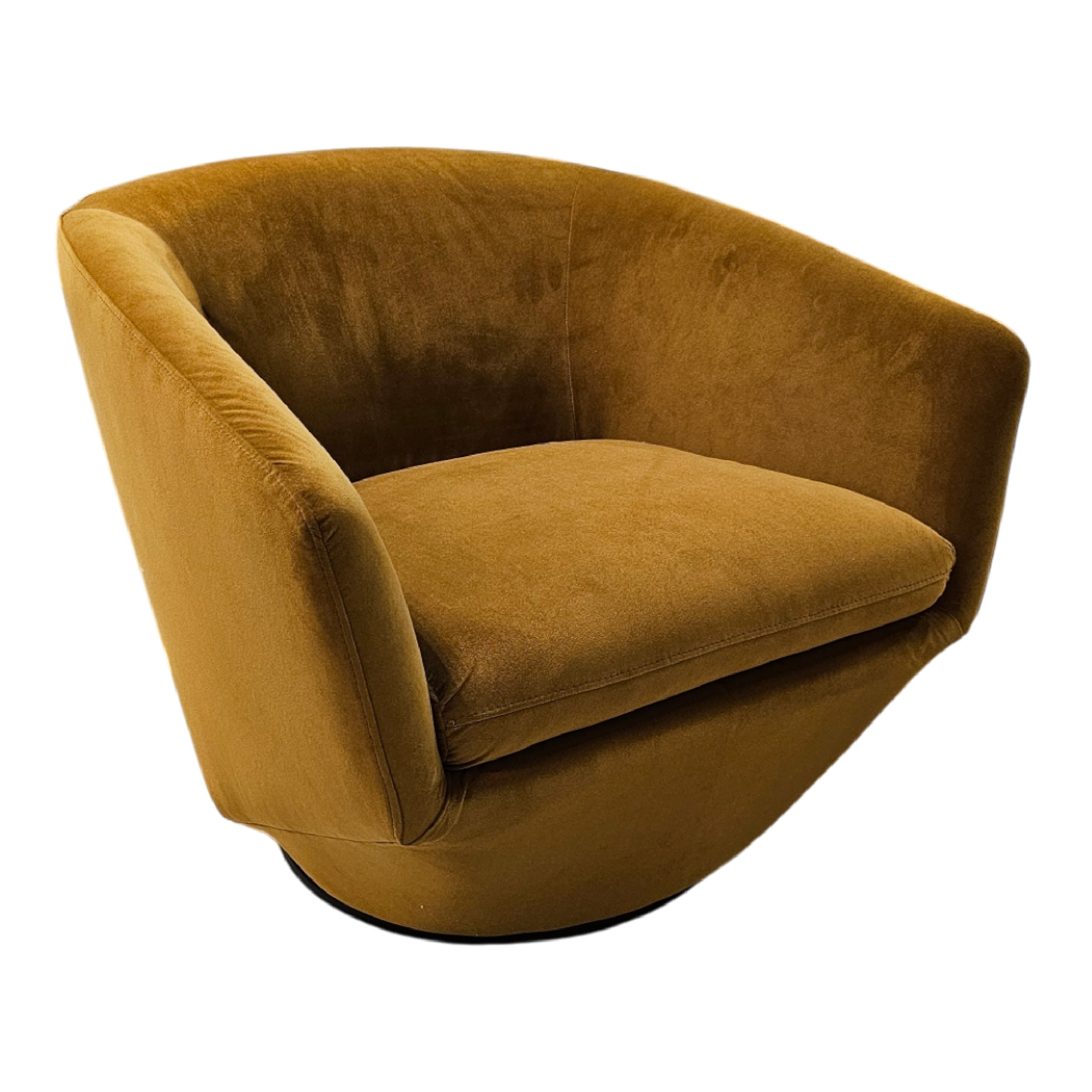 Tapizada en materiales de alta calidad como velvet o suede, está disponible en una paleta de tonos cuidadosamente seleccionados: verde oliva, gris claro, ivory y ocre. Su asiento acolchado brinda soporte y comodidad, mientras que su forma curvada genera una estética armónica y sofisticada.