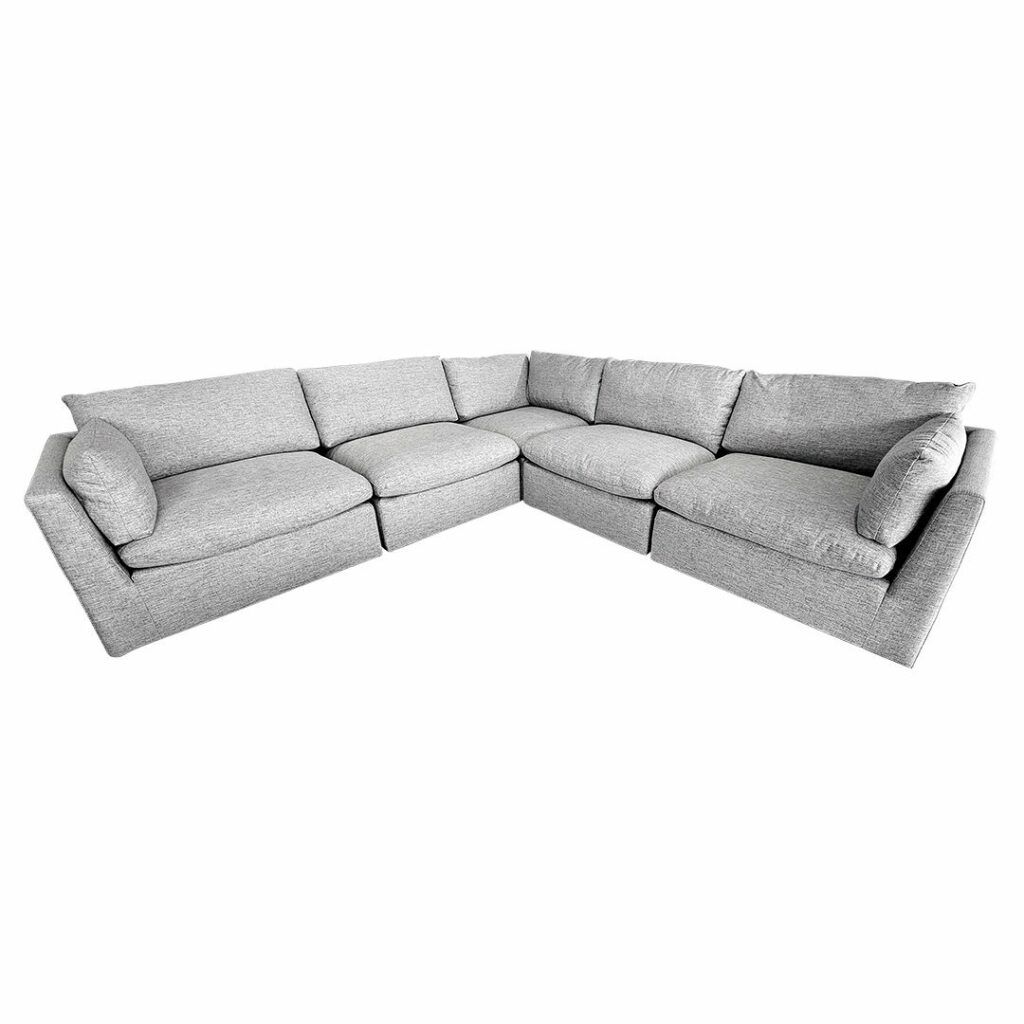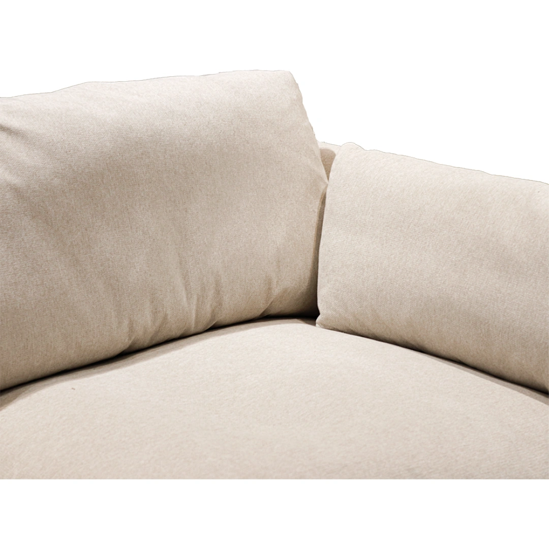 Tapizado en una tela suave y resistente al uso diario, ofrece una experiencia de descanso envolvente gracias a sus cojines de asiento y respaldo generosamente acolchados. Cada sección del seccional ha sido diseñada con proporciones equilibradas y líneas limpias para aportar comodidad, estilo y presencia a cualquier sala.
