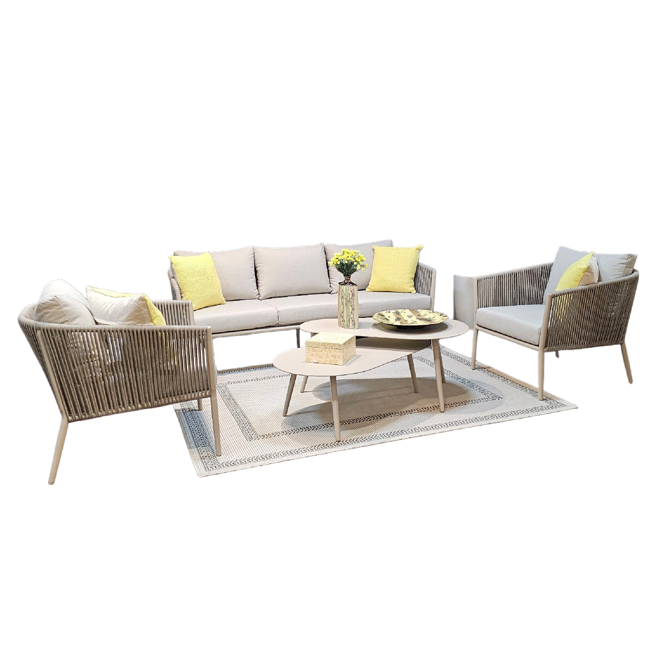 Con un diseño contemporáneo y materiales de alto rendimiento, el Set de Patio Gauri redefine la comodidad y funcionalidad en exteriores. Pensado para resistir las condiciones del clima sin renunciar al estilo, es ideal para terrazas, jardines o espacios al aire libre con personalidad.