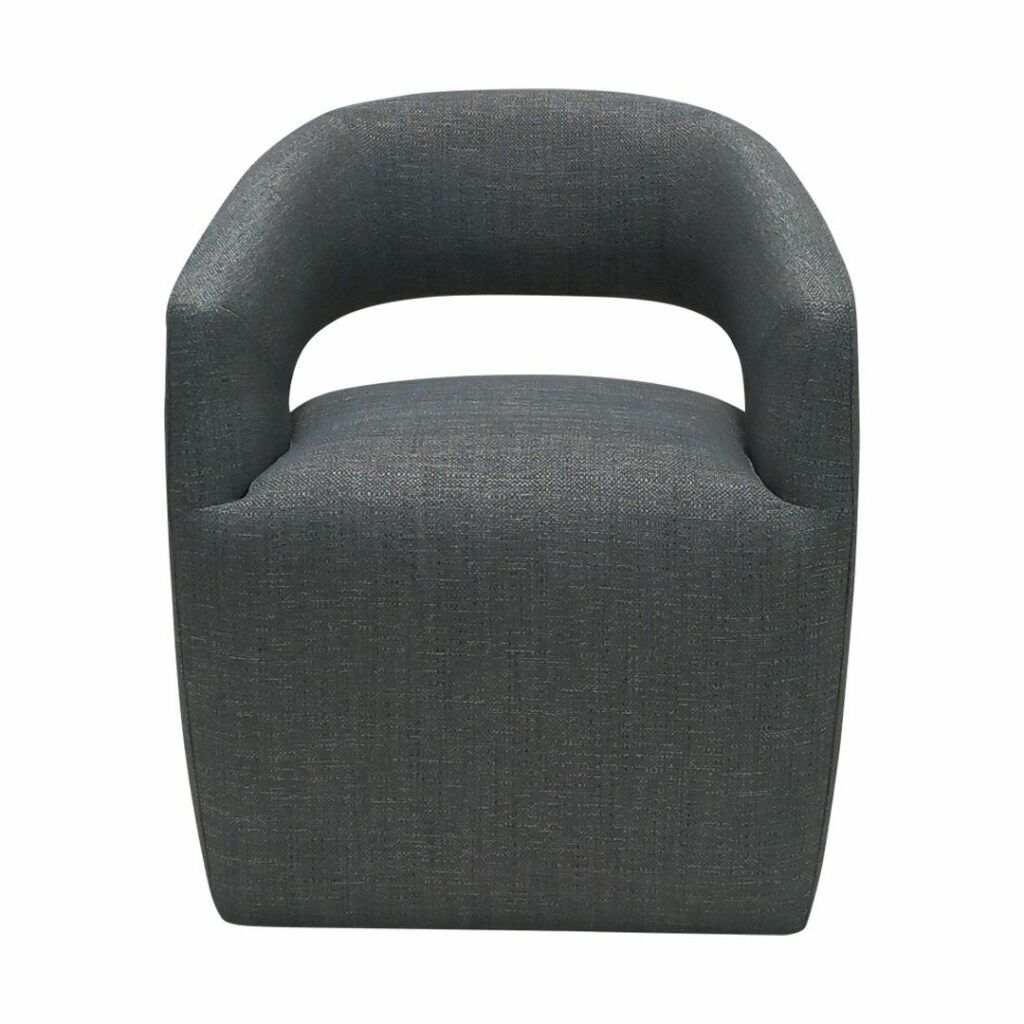 Silla para comedor/ocasional muy cómoda y con un diseño en líneas redondeadas, que dan ese toque de modernismo y calidez, posee ruedas para desplazarse con facilidad, forrada en su totalidad en tela.