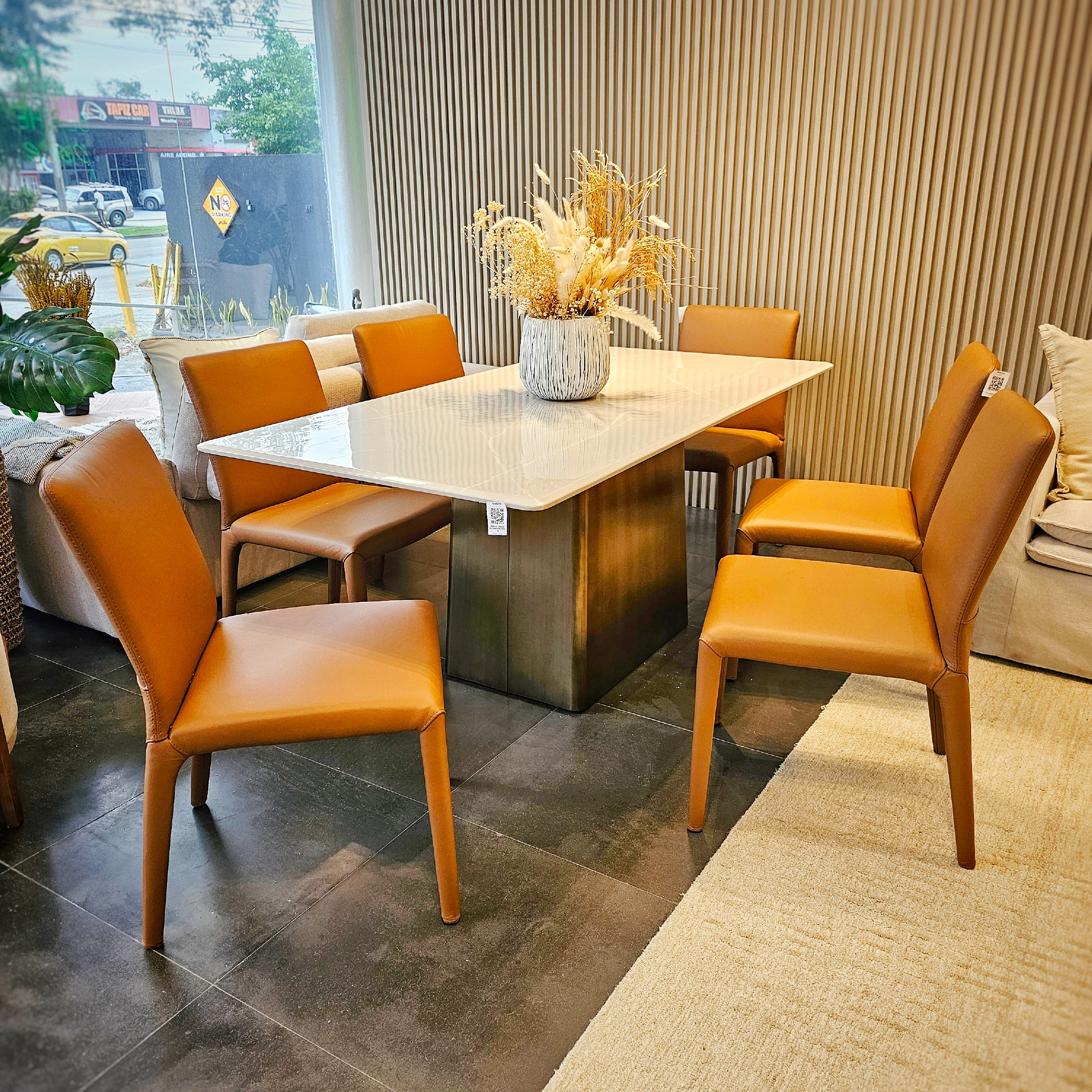 Con un diseño que equilibra sofisticación y funcionalidad, la Silla de Comedor Evolvea es la elección perfecta para quienes buscan dar un toque refinado a su comedor. Su acabado en cuero CU aporta una textura lujosa que realza cualquier ambiente.