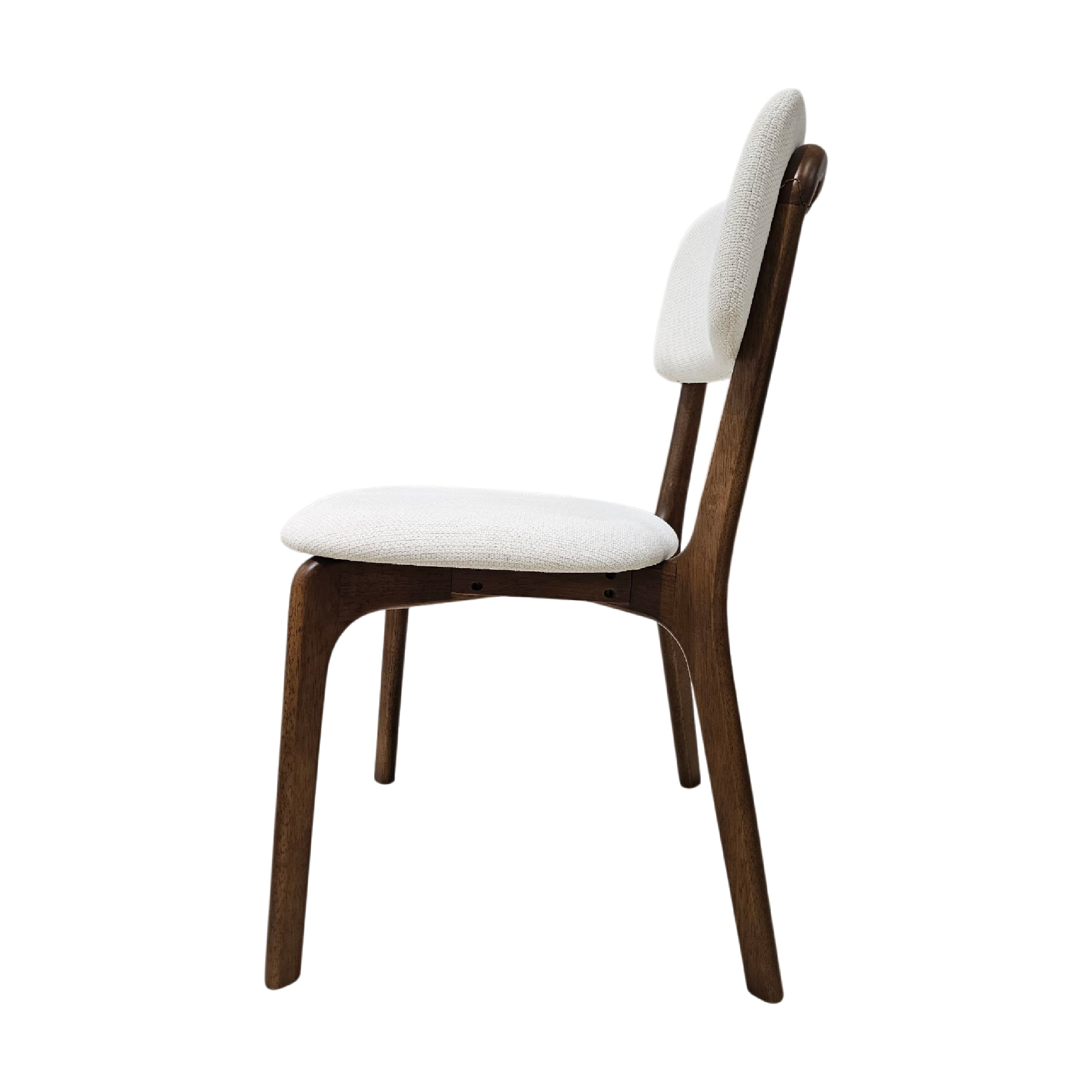 La Silla de comedor Kova fusiona estética moderna con funcionalidad ergonómica. Su diseño limpio y fluido se adapta perfectamente a espacios contemporáneos, brindando un aire sofisticado sin perder calidez. Con una estructura de madera sólida en acabado natural y un asiento tapizado en tela suave al tacto, ofrece soporte cómodo para largas reuniones o cenas memorables.