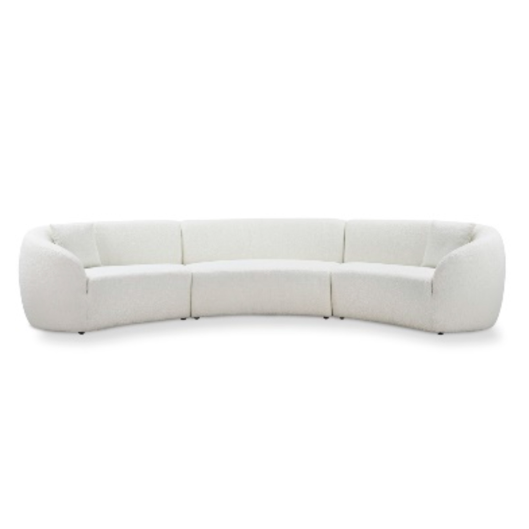 Moderno sofá lineal compuesto de modulos de diseño curvilíneo, con mucho estilo y confort.