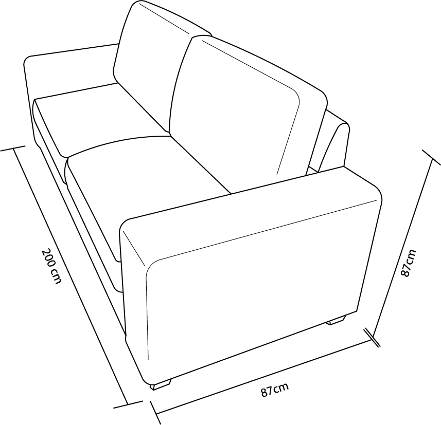 - Dimensiones: 200 cm de largo x 87 cm de ancho x 87 cm de alto.
