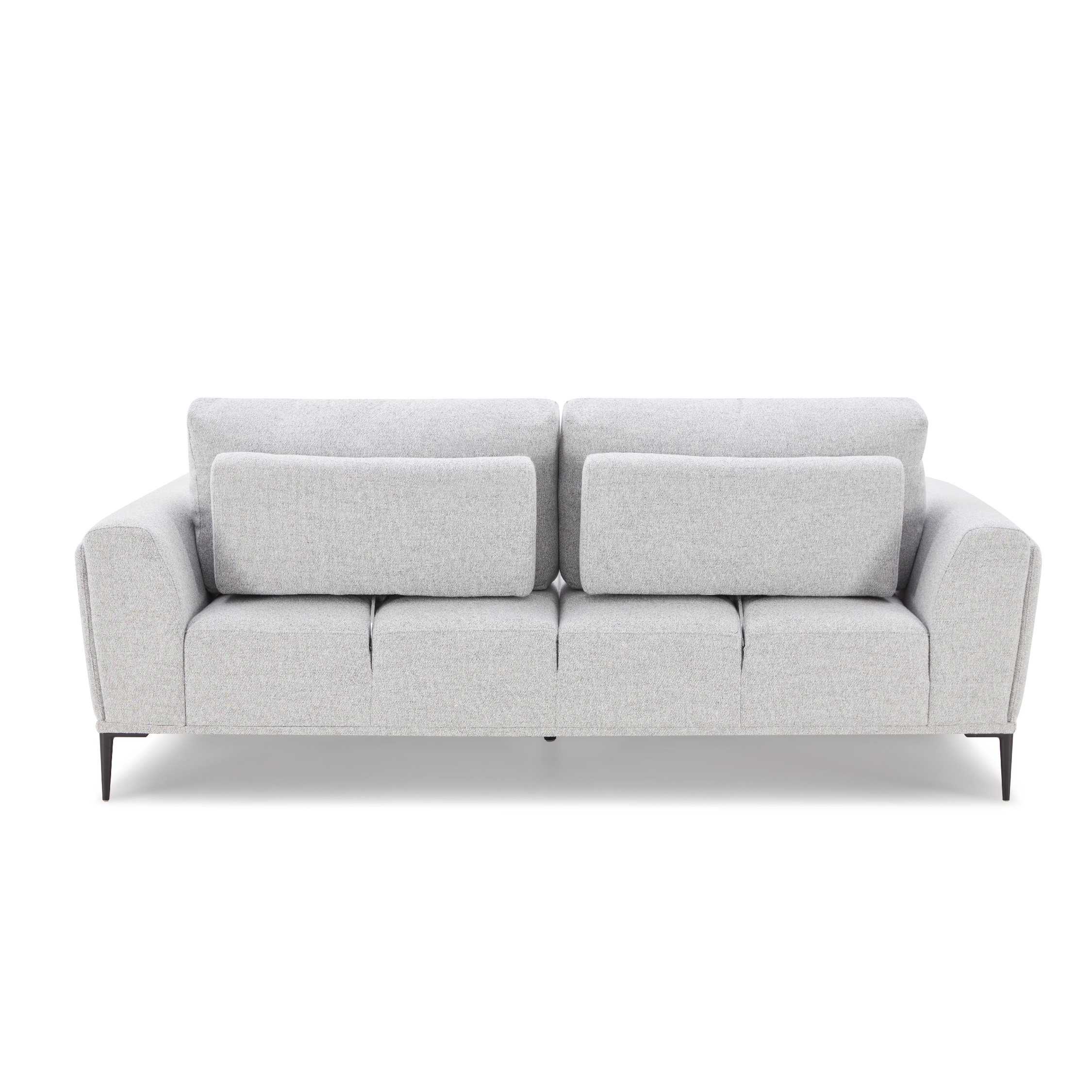 Su espaldar abatible —que puede inclinarse hacia adelante o atrás— lo convierte en el aliado ideal para momentos de descanso o reuniones sociales, ofreciendo apoyo personalizado según tu preferencia. La estructura firme, los cojines de respaldo generosos y el tapizado de textura suave elevan la experiencia de descanso diario a un nuevo nivel. Sus patas delgadas y metálicas aportan un toque liviano y elegante que estiliza el espacio sin sacrificar estabilidad.