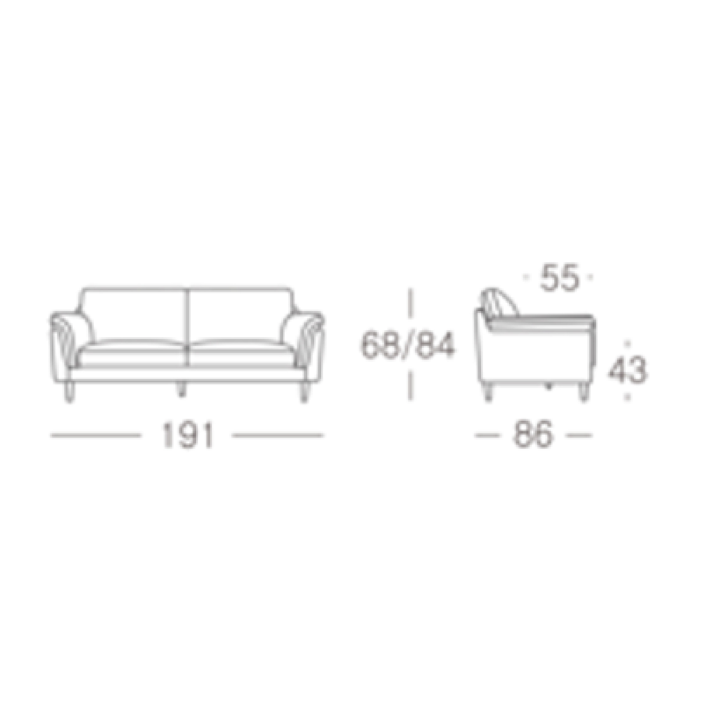 - Dimensiones: 191 cm de largo x 86 cm de profundidad x 68–84 cm de alto