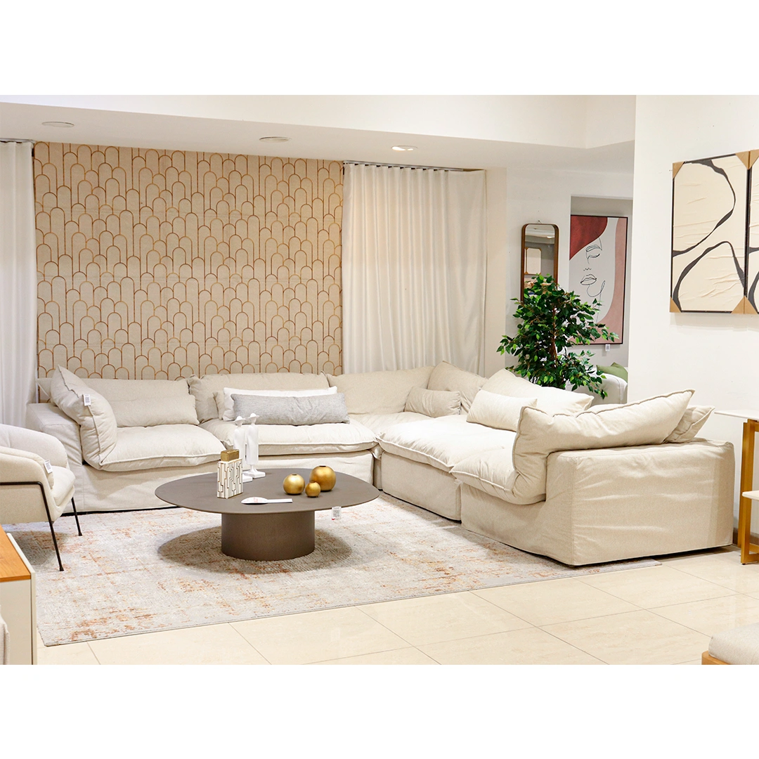 El Sofá Modular Cloud 5 posee un diseño moderno y versátil, compuesto por módulos que se adaptan fácilmente a cualquier espacio, brindando flexibilidad y estilo. Su sistema Slipcover permite retirar las fundas para facilitar el lavado, asegurando que siempre luzca impecable.