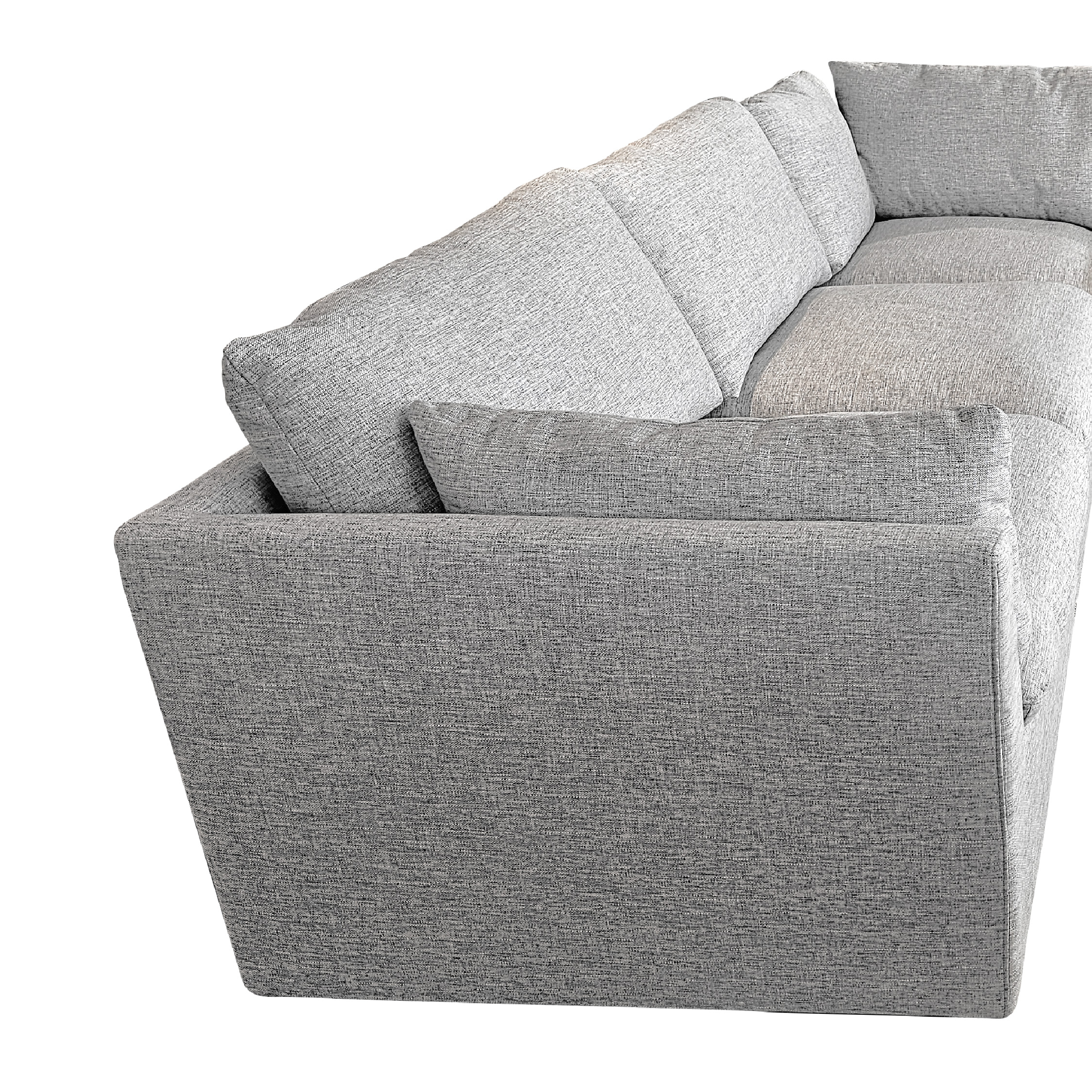 Gracias a su diseño modular, este sofá puede reconfigurarse según las necesidades de tu espacio, convirtiéndose en un elemento versátil y duradero que acompañará