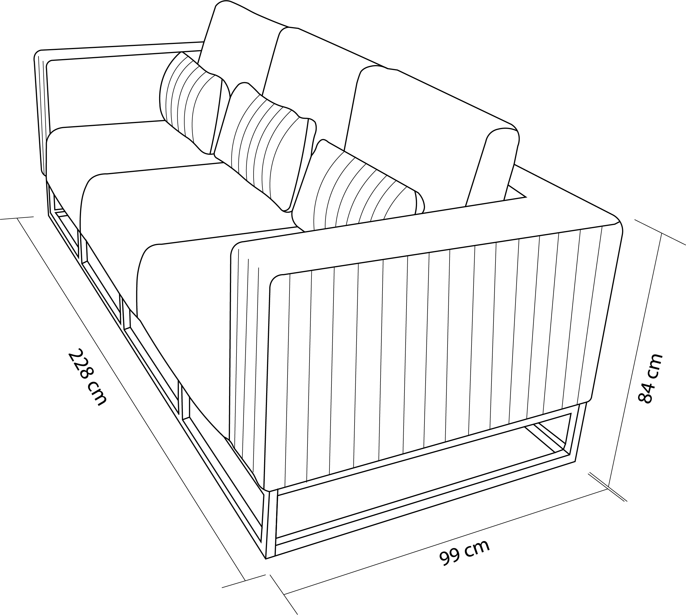 Largo 228 cm x ancho 99 cm x alto 84 cm