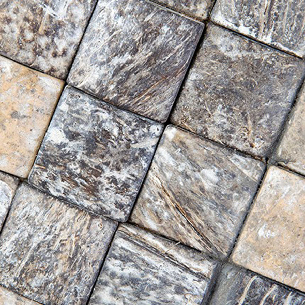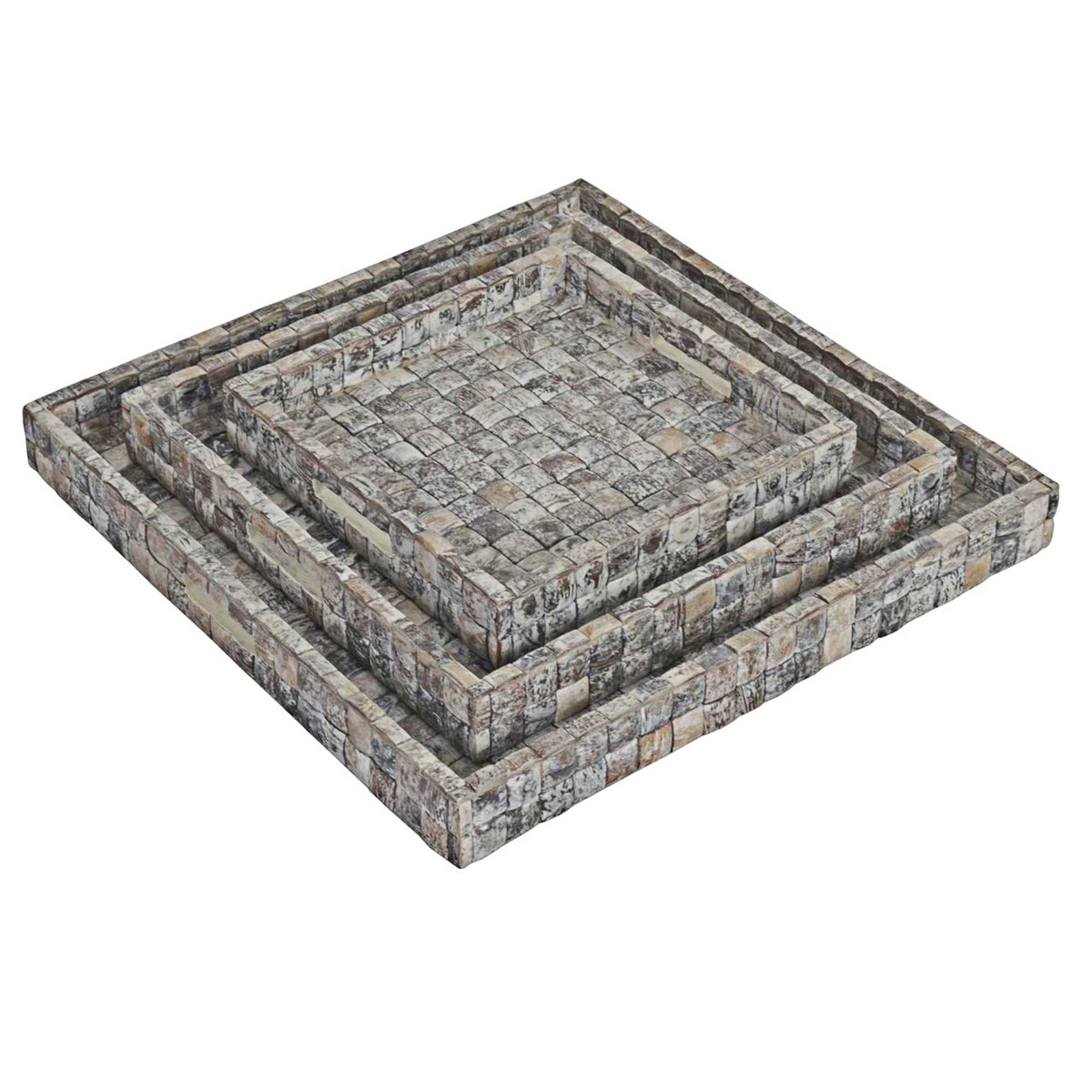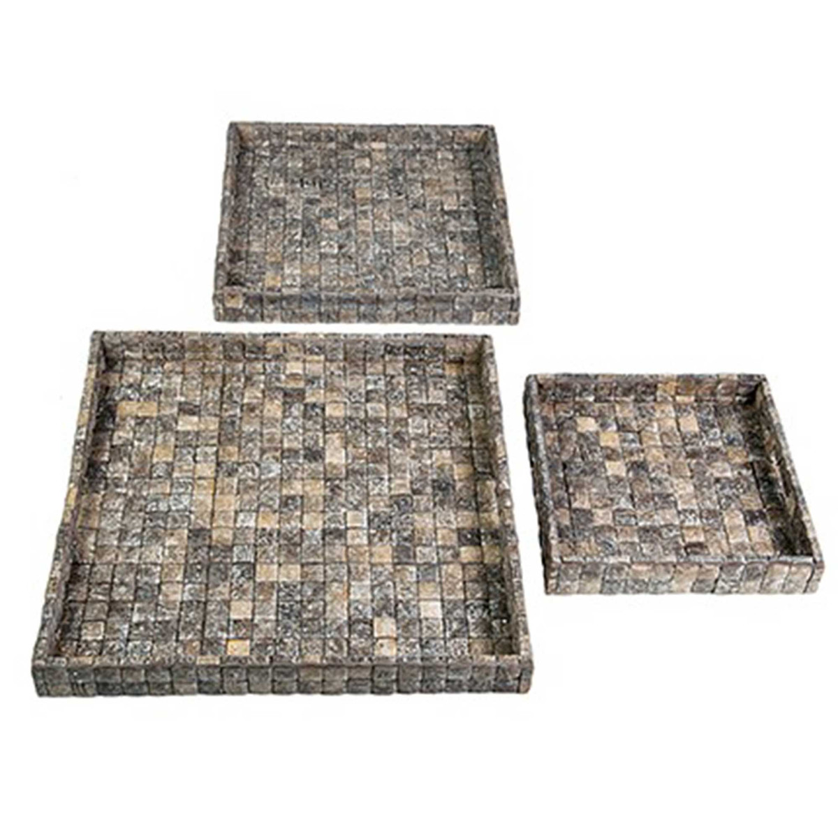 Square Coconut Shell Trays, Set of 3, Fog Grain